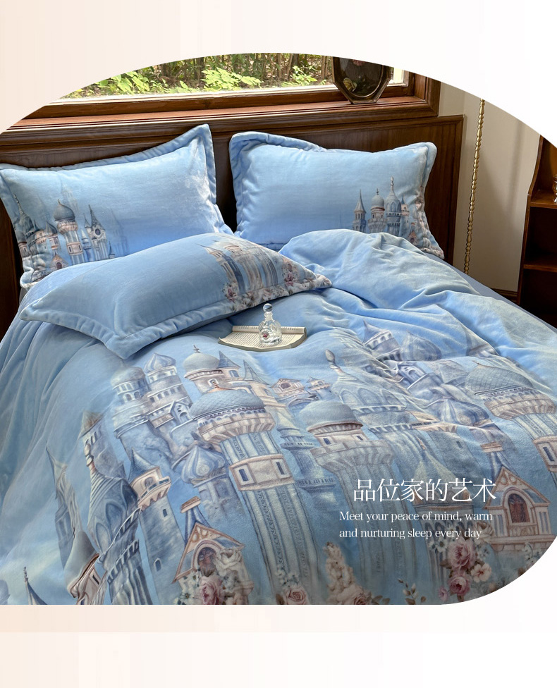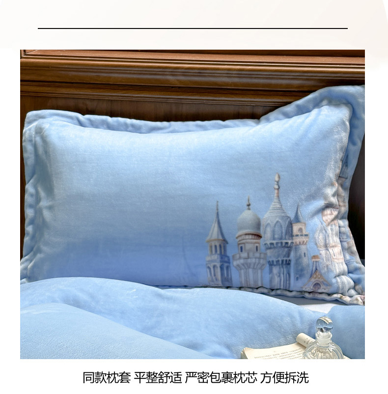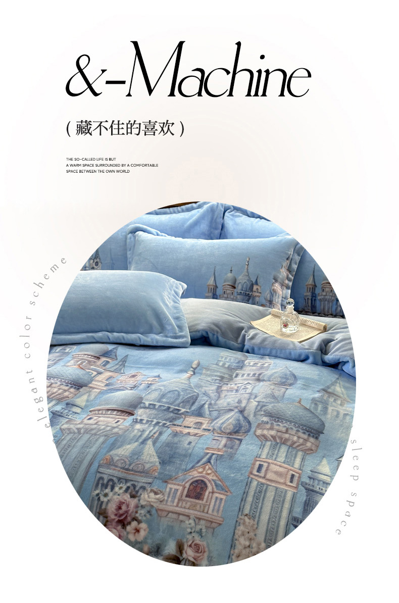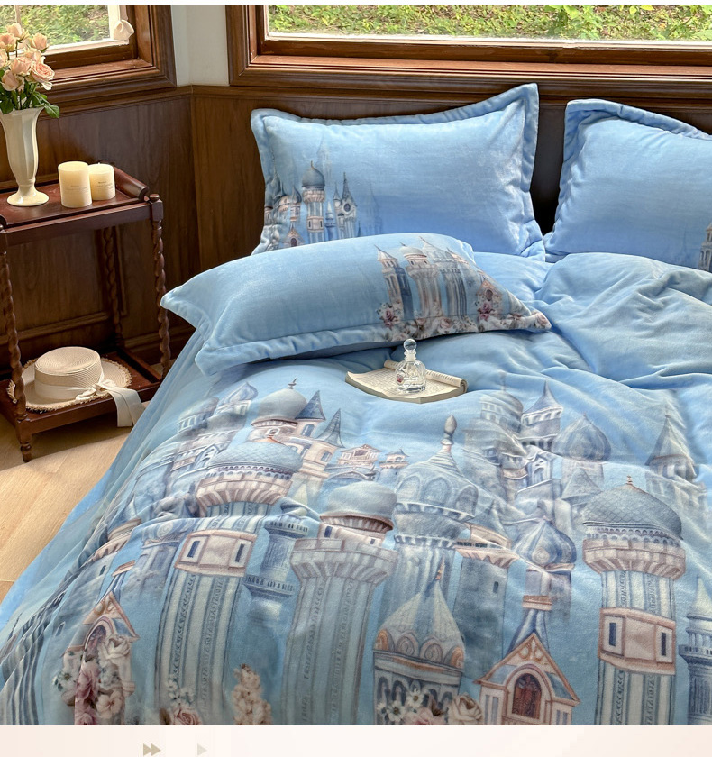 麋兔 2024新款250克法式数码原创手绘牛奶绒四件套 梦幻城堡