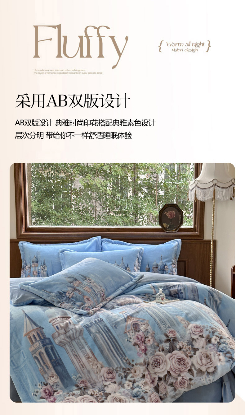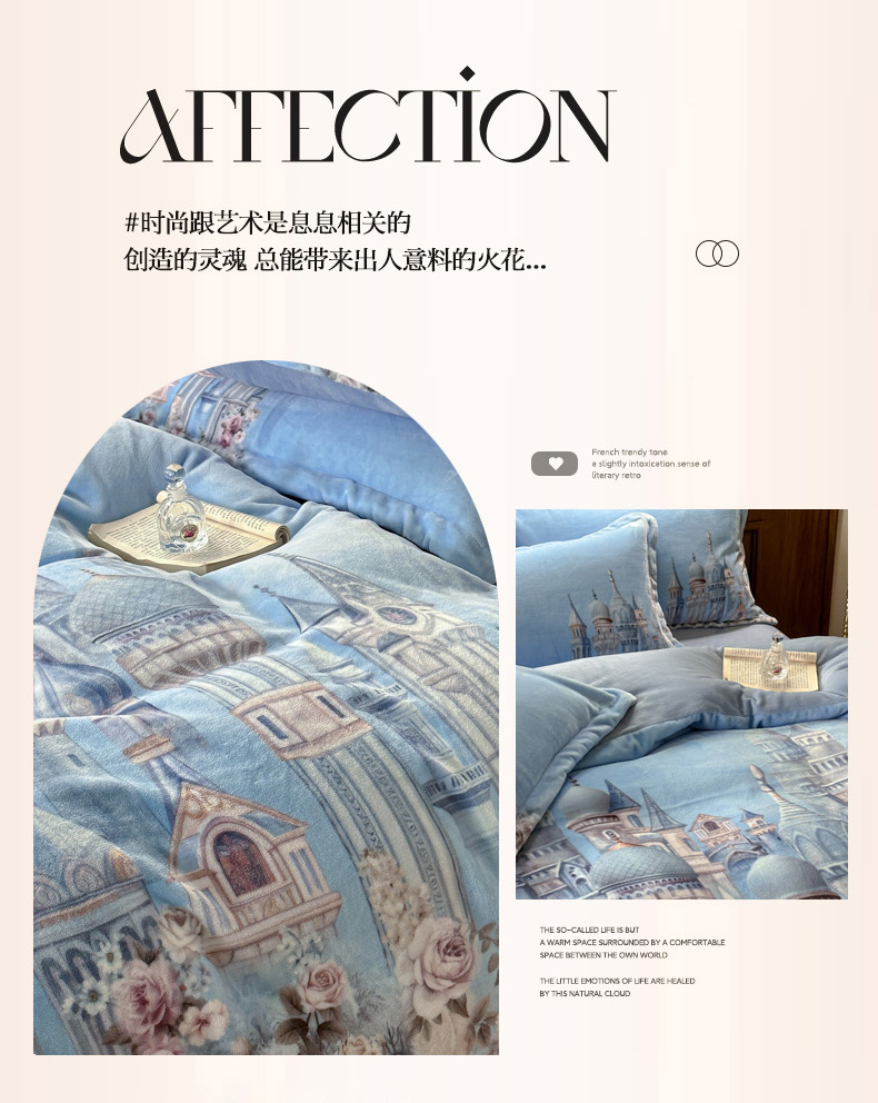 (总)麋兔 2024新款法式原创手绘牛奶绒床笠盖毯,卡蒂亚,梦幻城堡,秘境庄园,莫兰,莫奈,维密