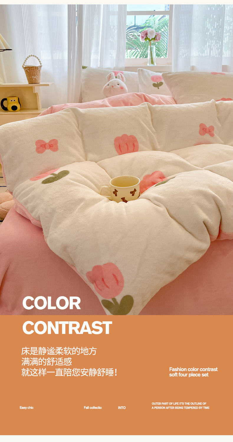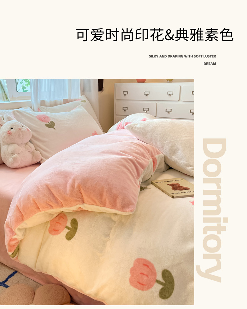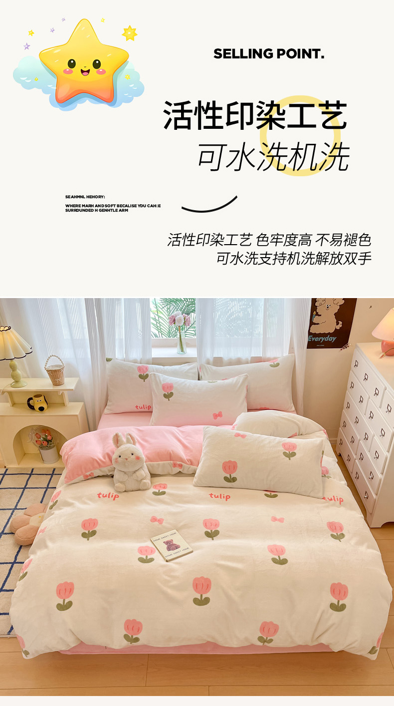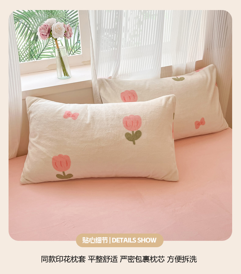 当前位置: 91家纺网 > 商品网购 > 床品套件 > 四件套 > 牛奶绒四件套 > 慕澄家纺 2024新款小清新可爱印花牛奶绒加厚保暖四件套 粉色郁金香