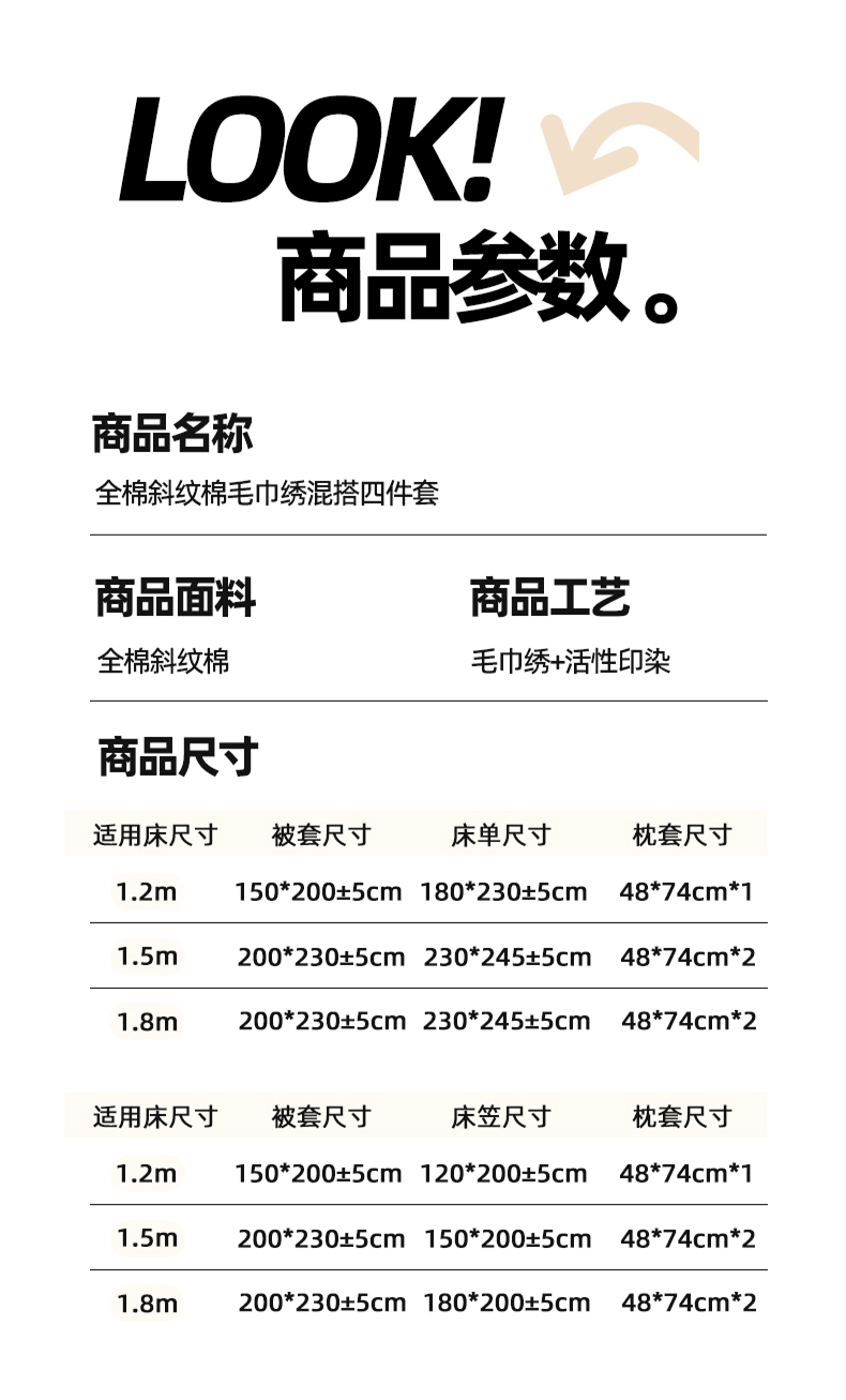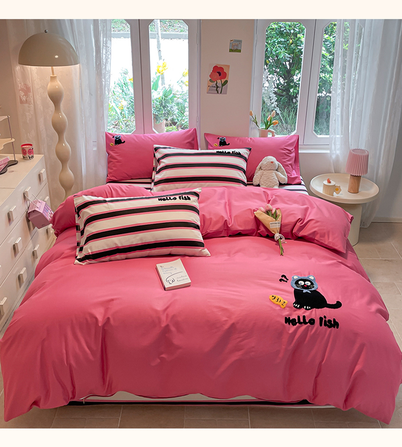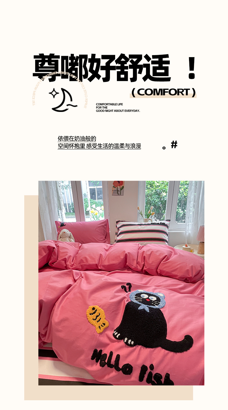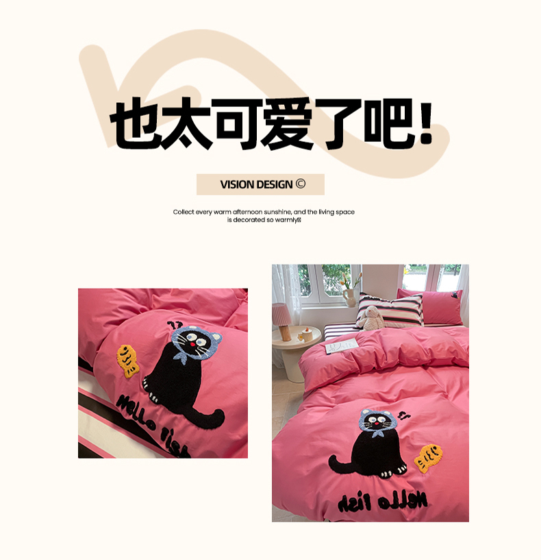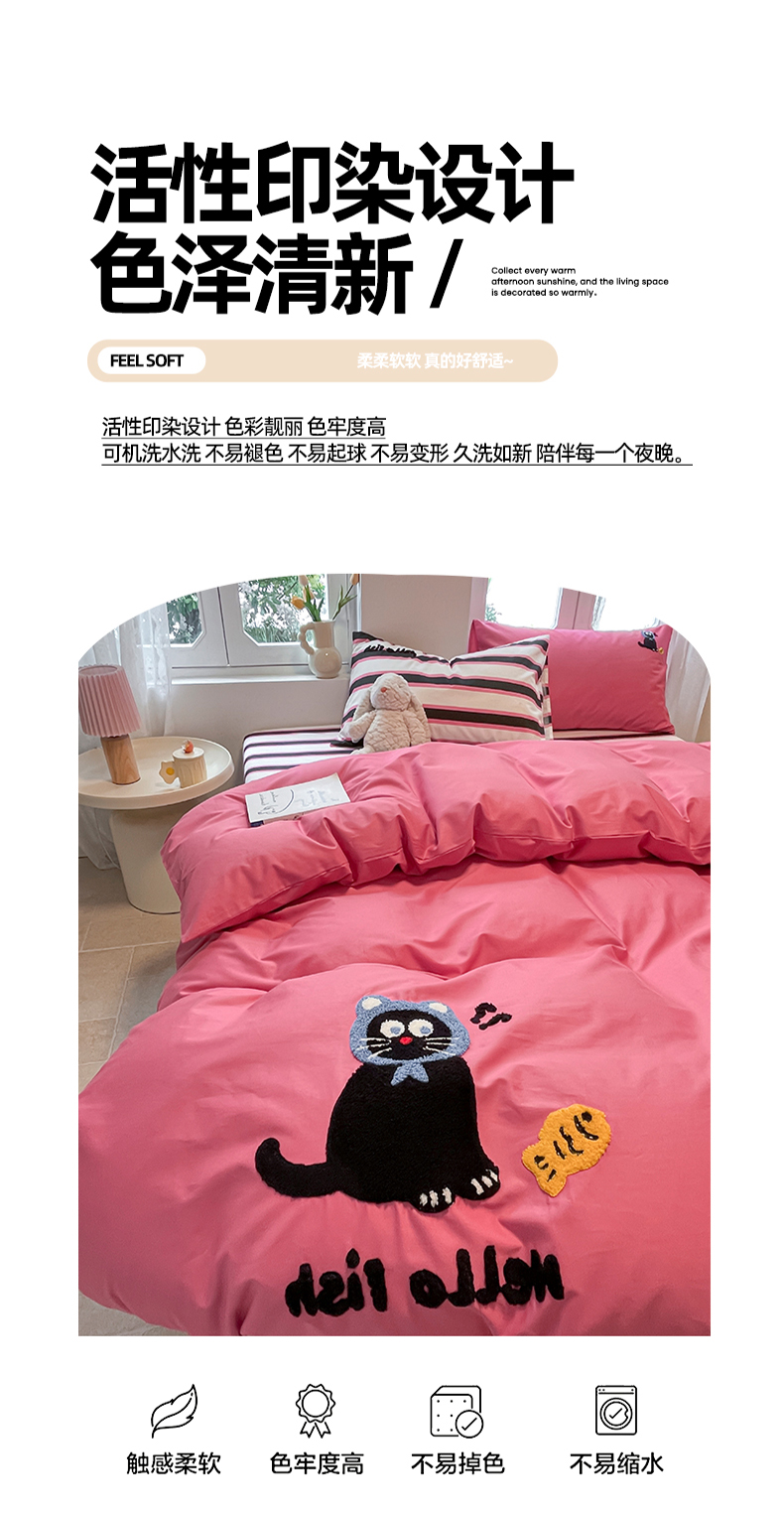商品名称:吉象家纺 2024新款全棉斜纹毛巾绣混搭四件套 小馋猫