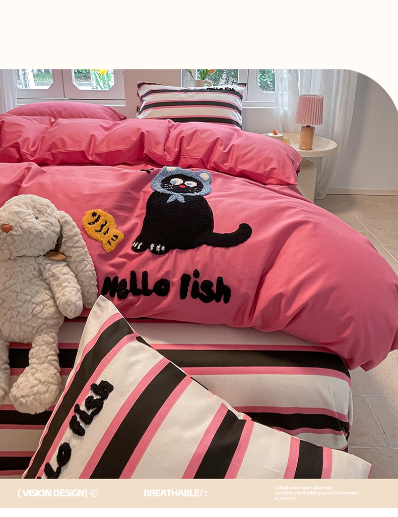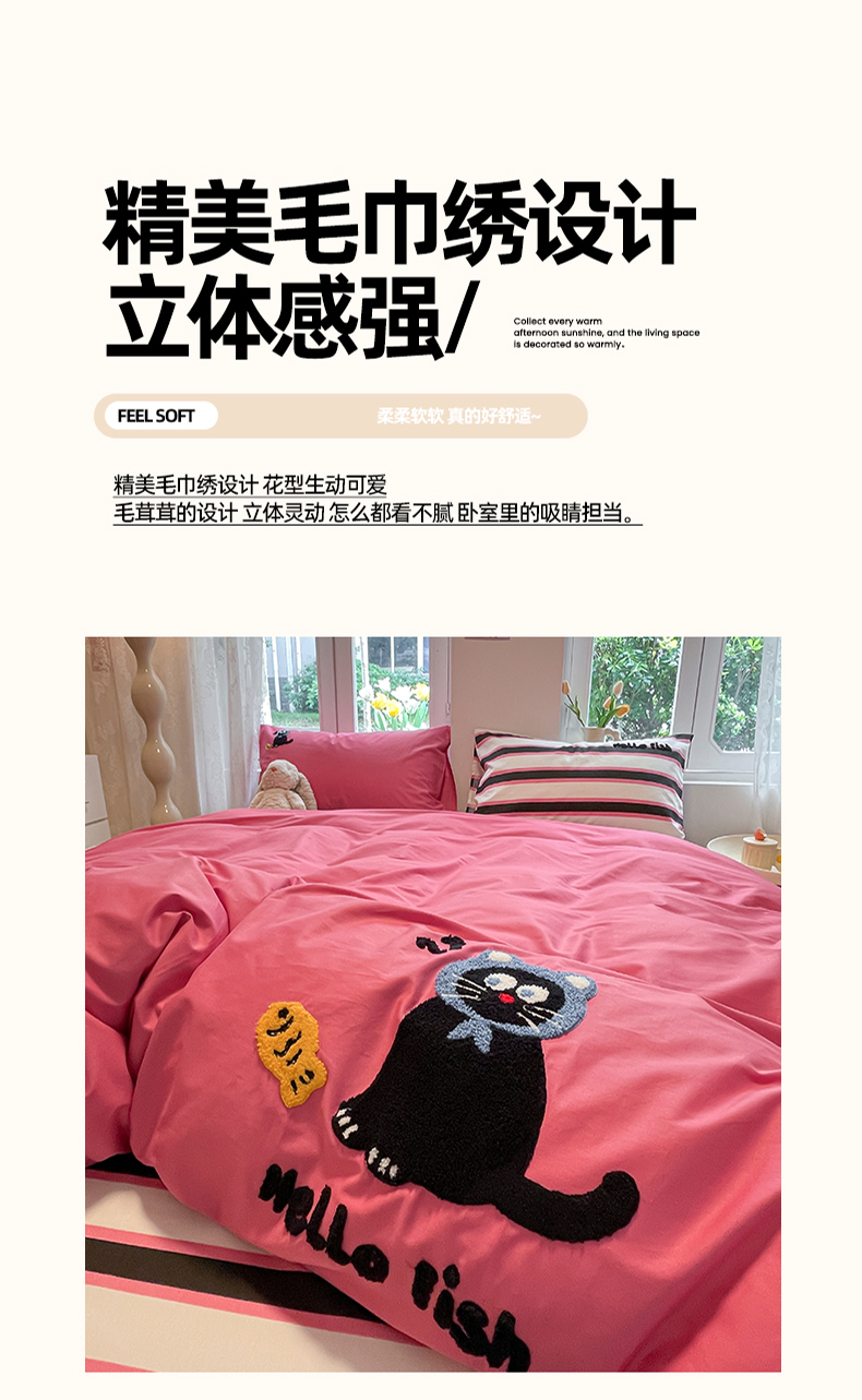 吉象家纺 2024新款全棉斜纹毛巾绣混搭四件套 小馋猫