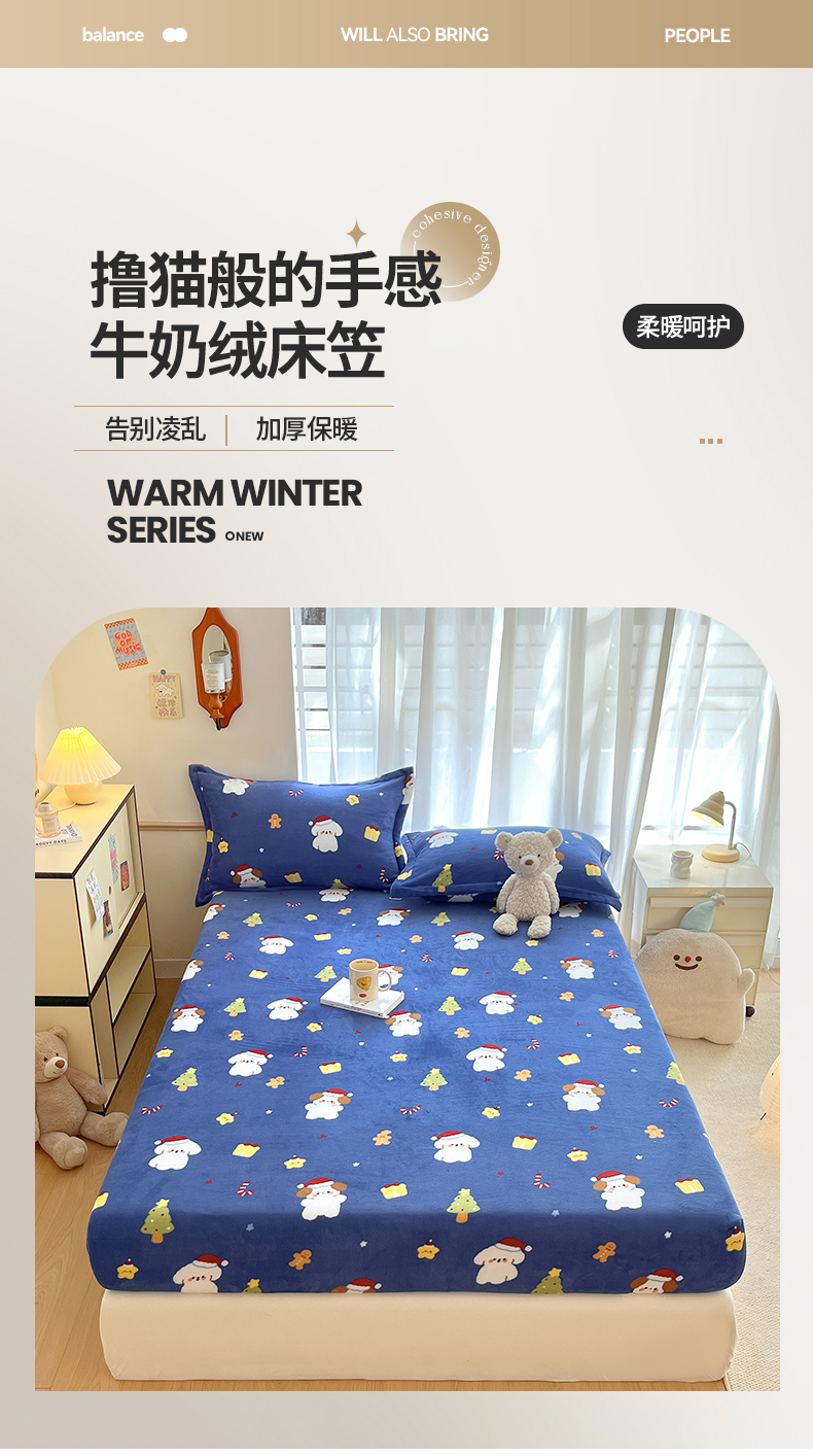 寻米 2024新款加厚保暖牛奶绒床笠 圣诞派对