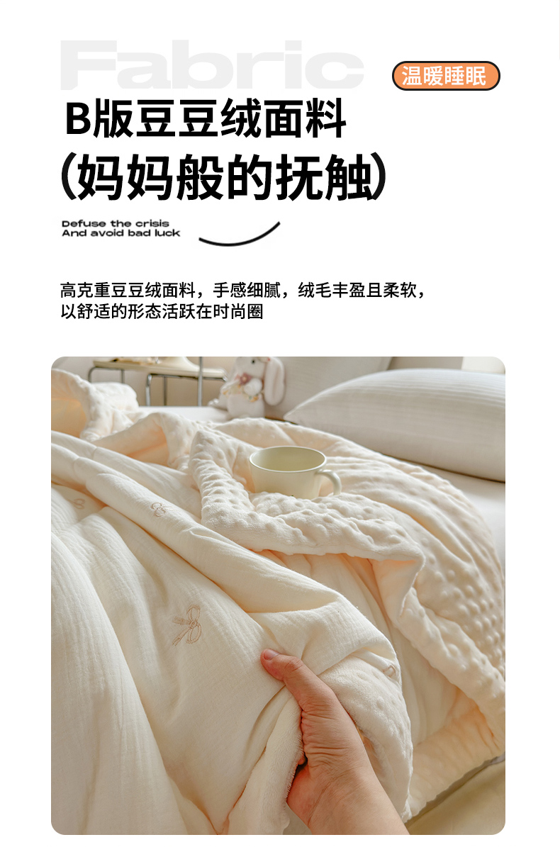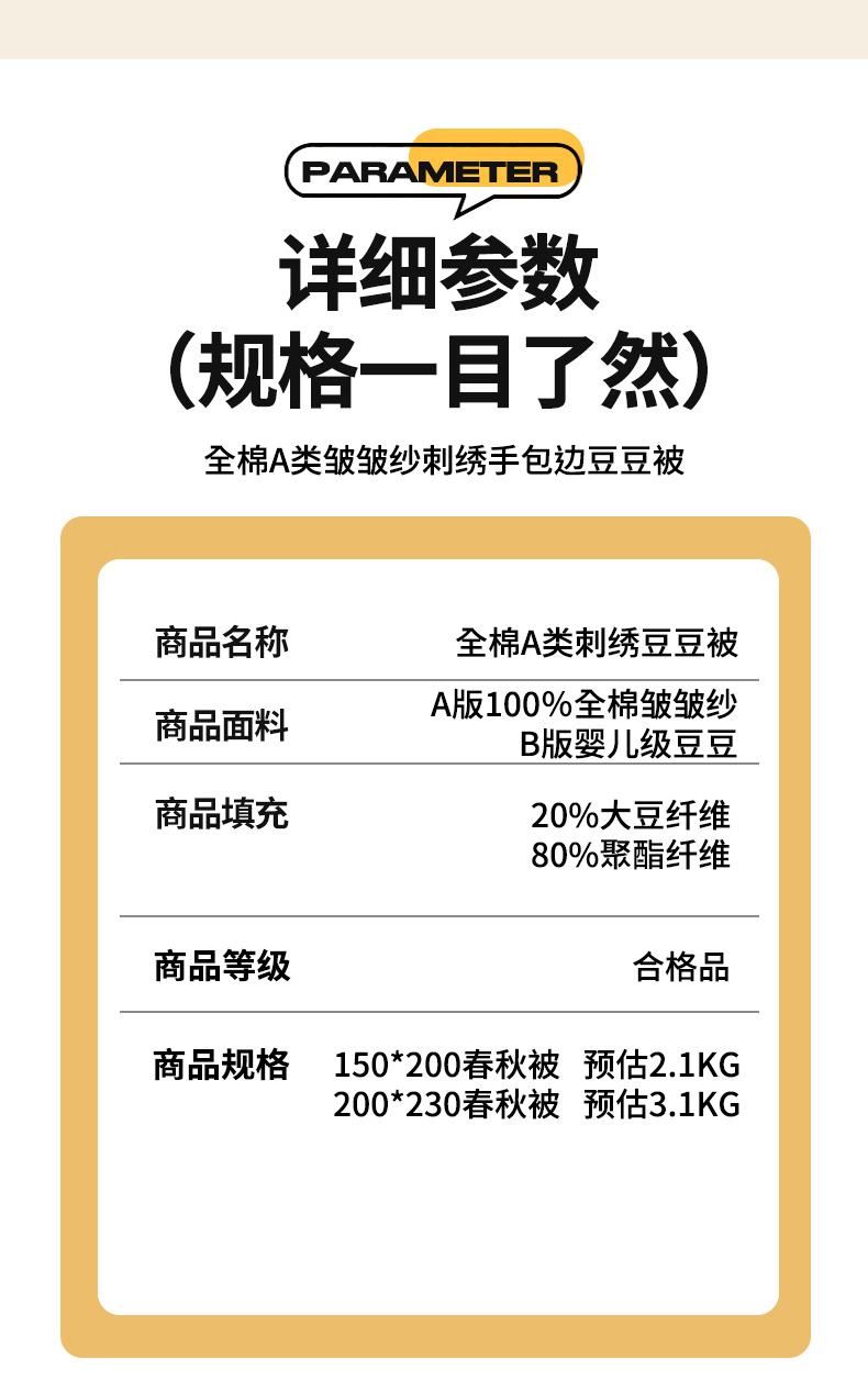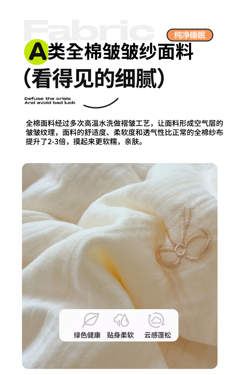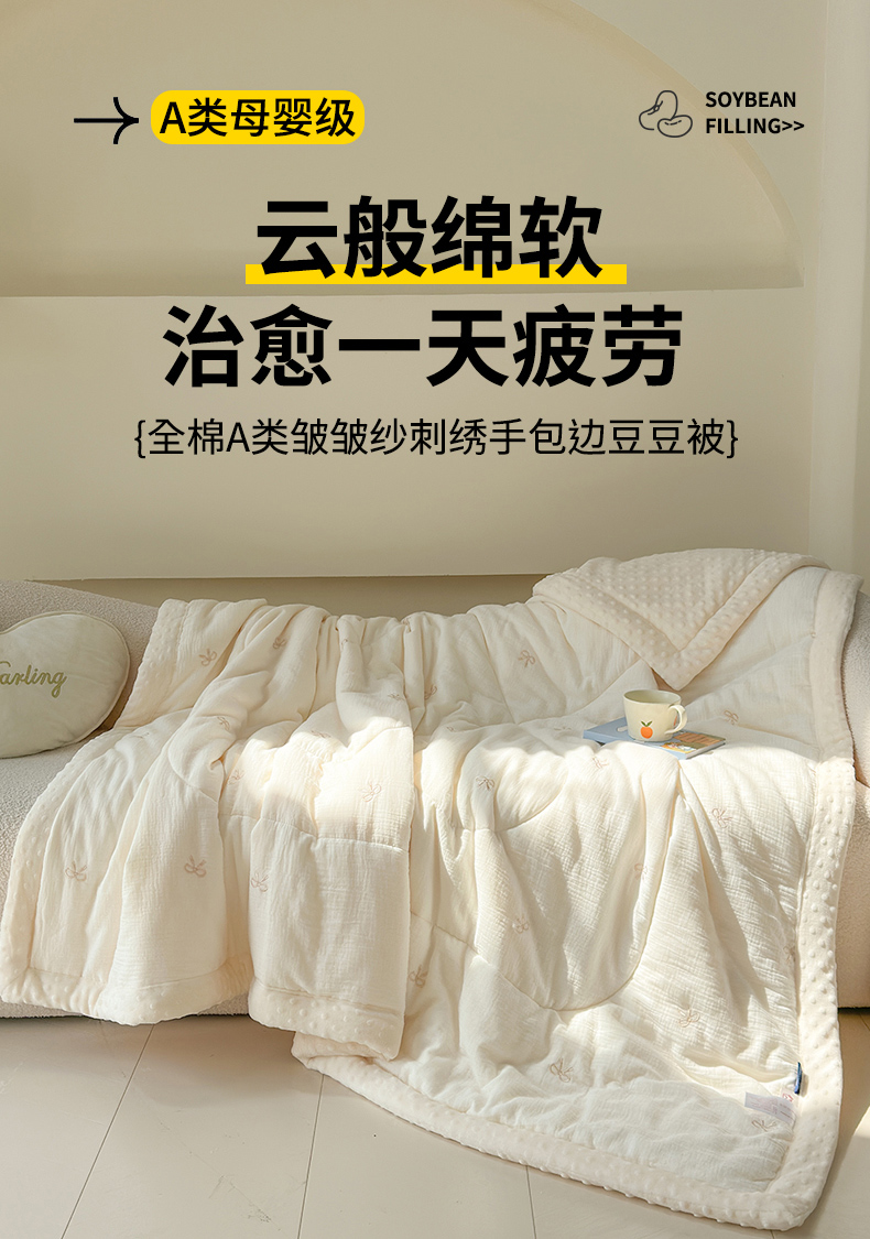 商品名称:木楌家居 2025新款全棉A类皱皱纱刺绣手包边豆豆被 清欢