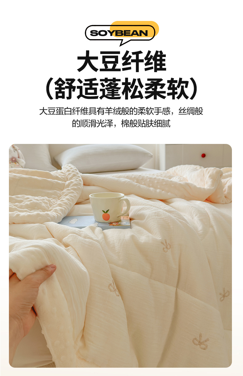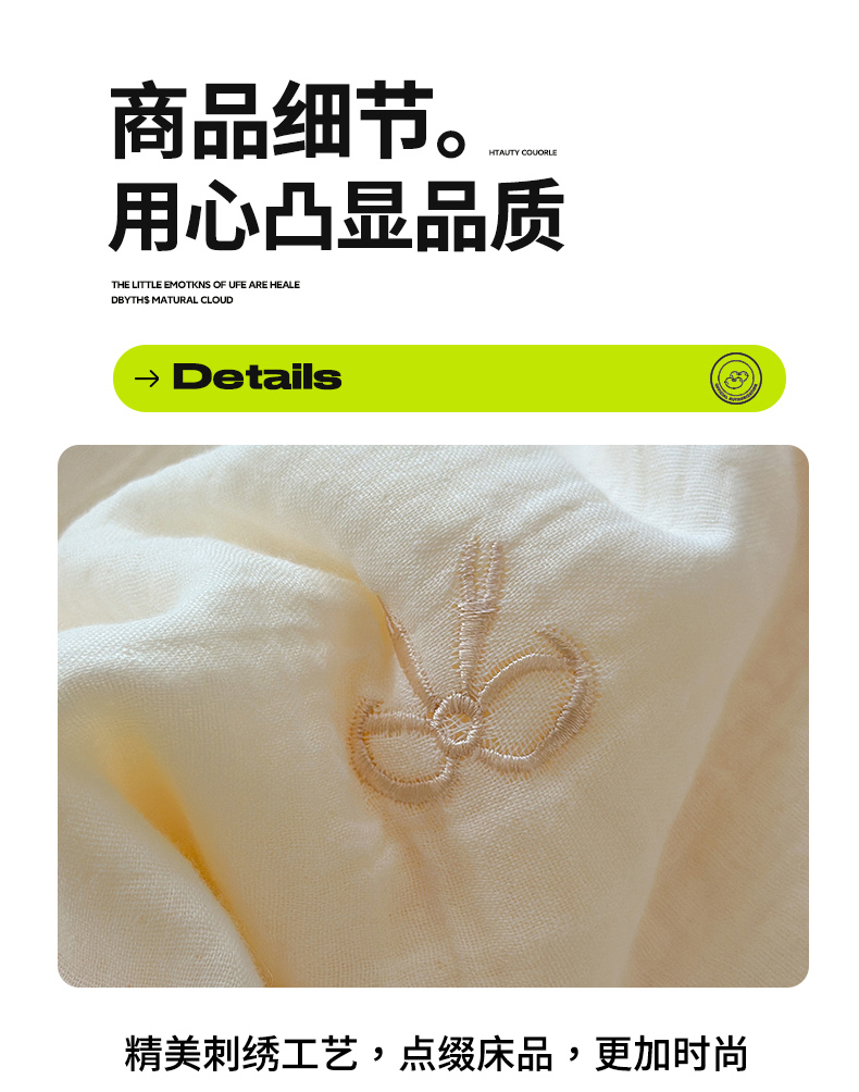 (总)木楌 2025年新款双层皱皱纱刺绣款夏被大豆被,蓓蕾,小飞象,蝴蝶结,领结兔,枇杷叶,三叶草,小樱桃,幸运熊