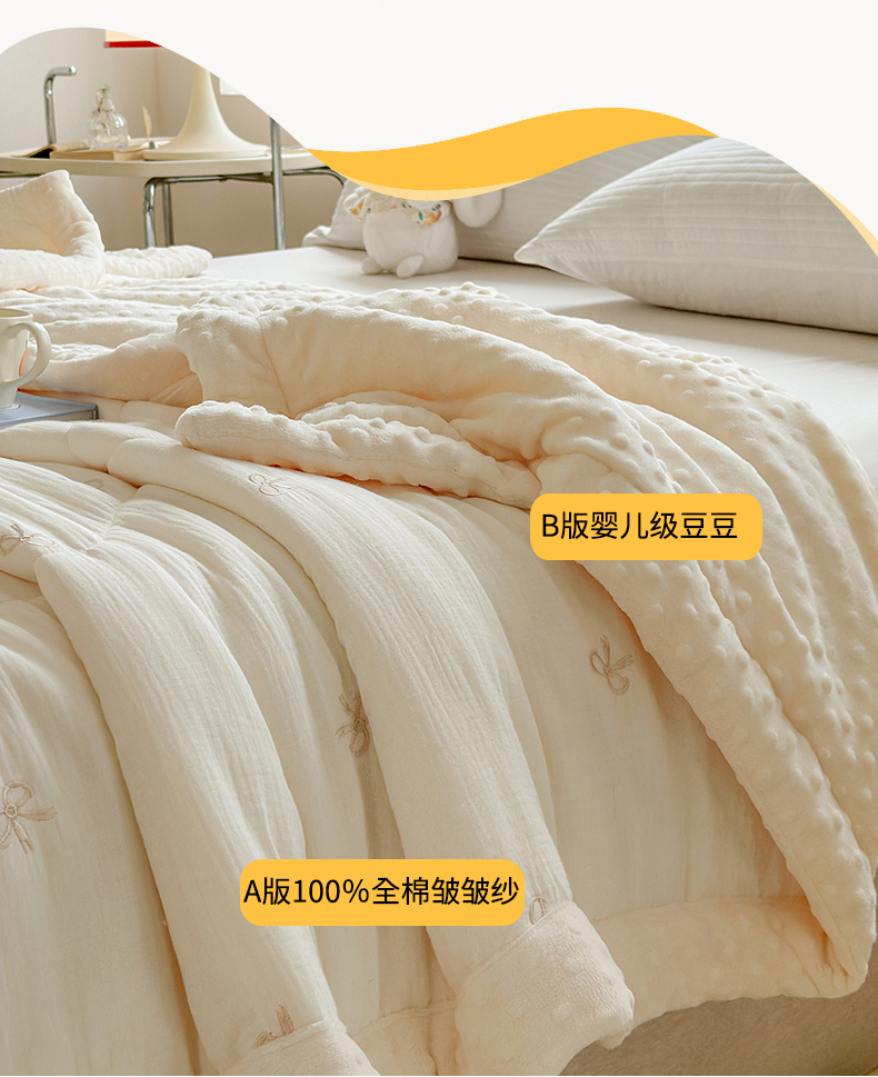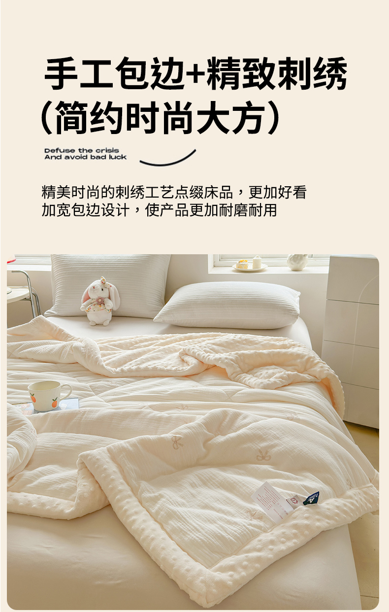 木楌家居 2025新款全棉A类皱皱纱刺绣手包边豆豆被 清欢