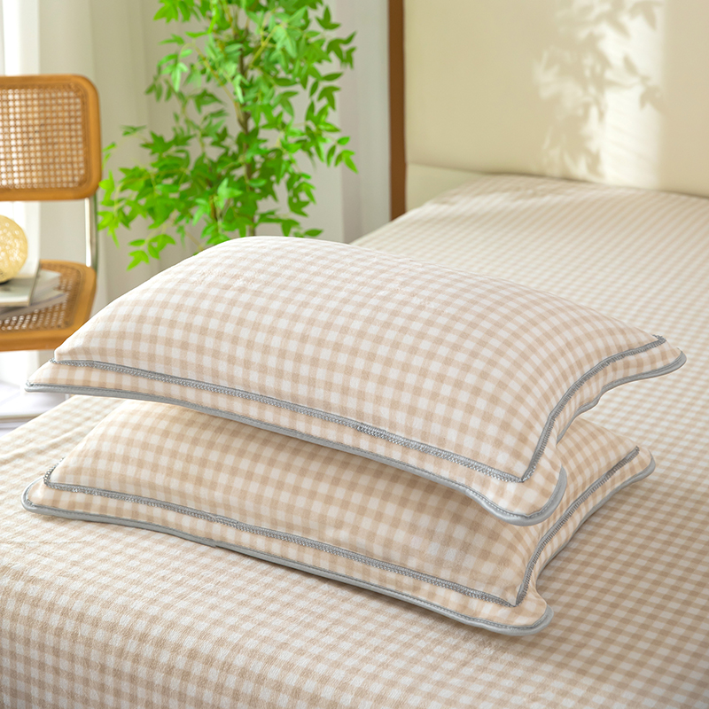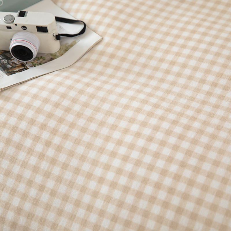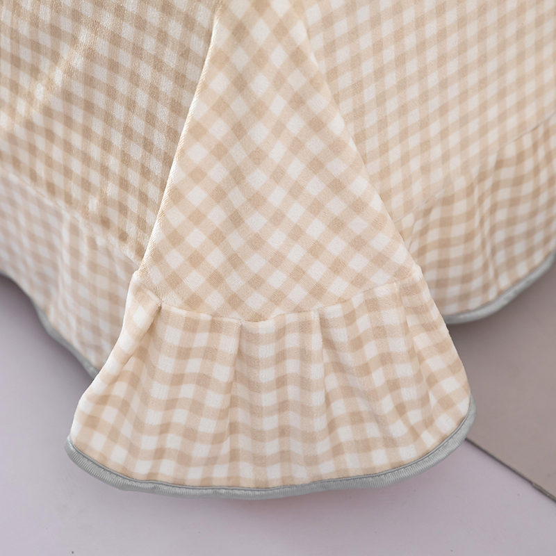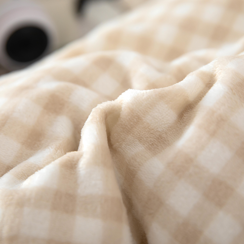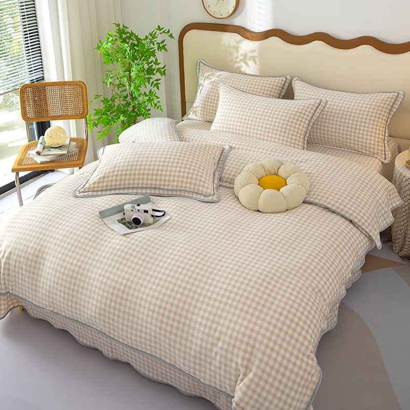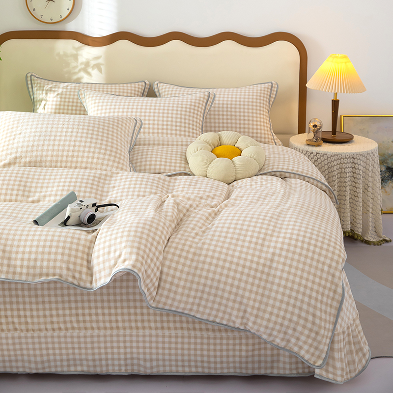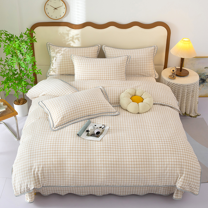 雨萝家纺 2024新款亲肤舒适牛奶绒四件套 浅棕小格