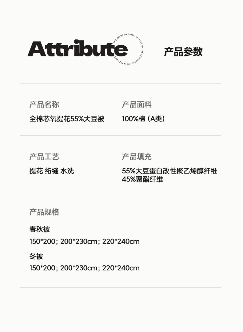 商品名称:(总)莱福仕家纺 2024新款A类芯氧提花55%大豆被春秋被冬被