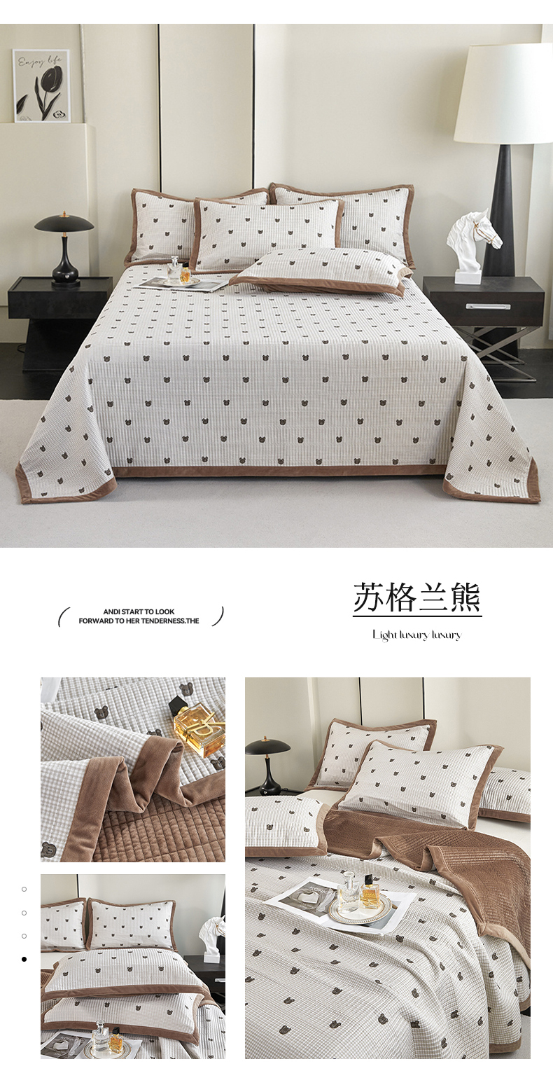 (总)莎果家纺 2025秋冬一面天丝一面绒高温砂洗床盖三件套