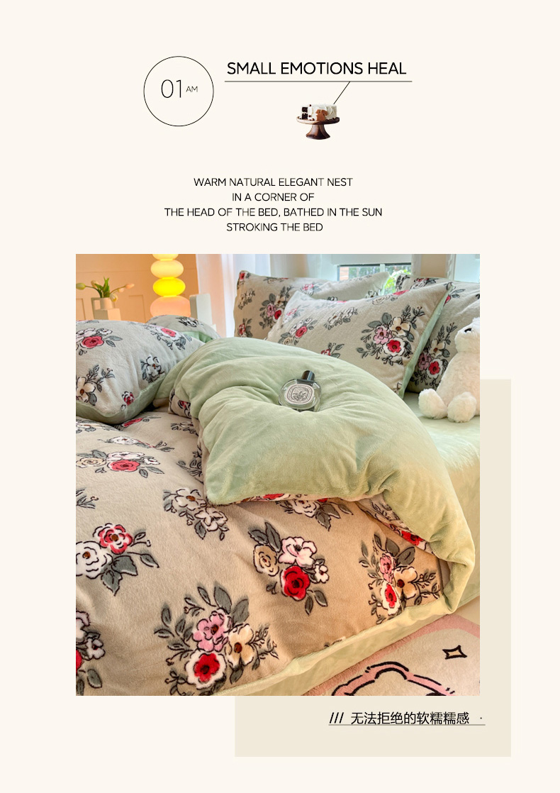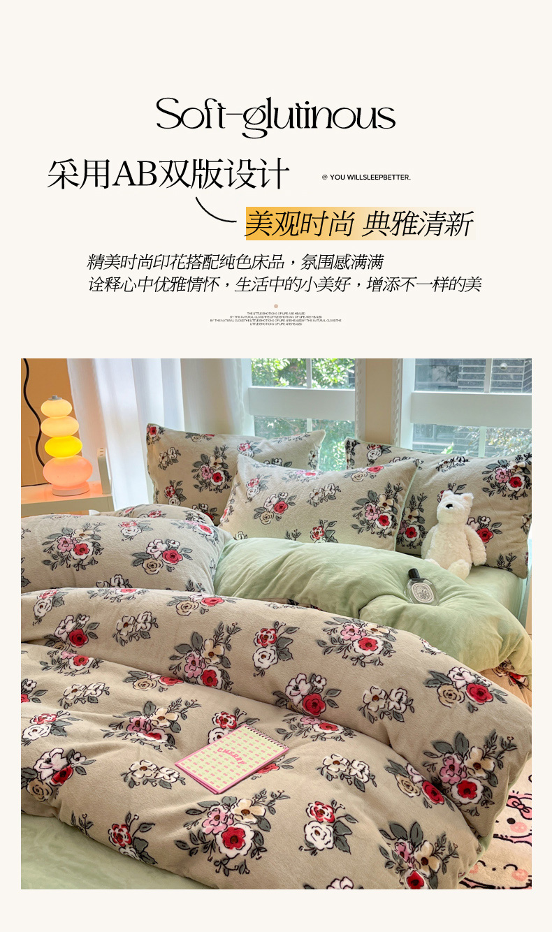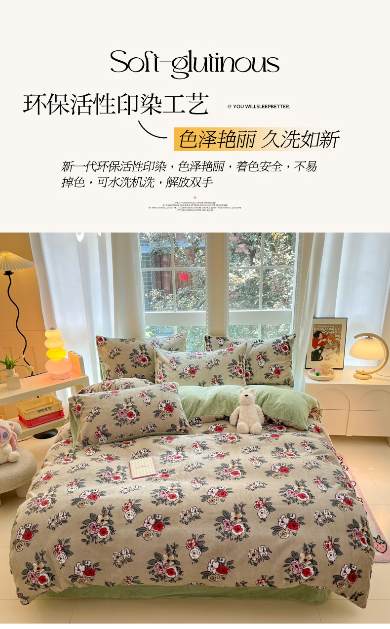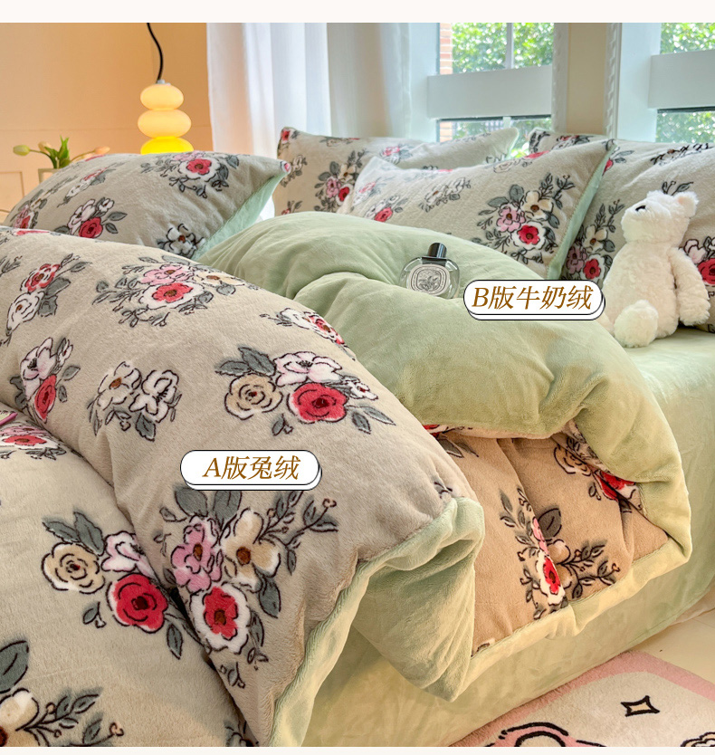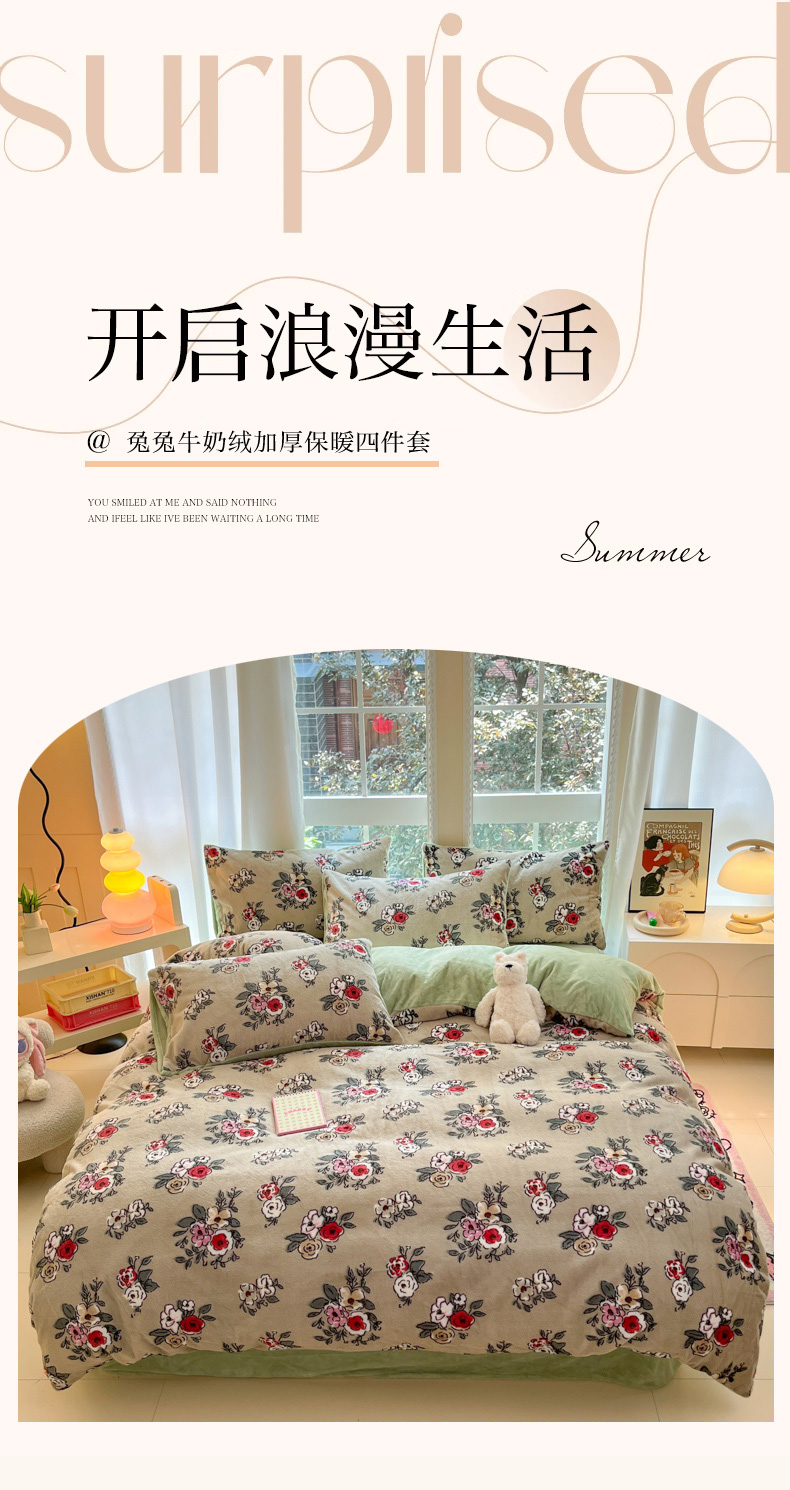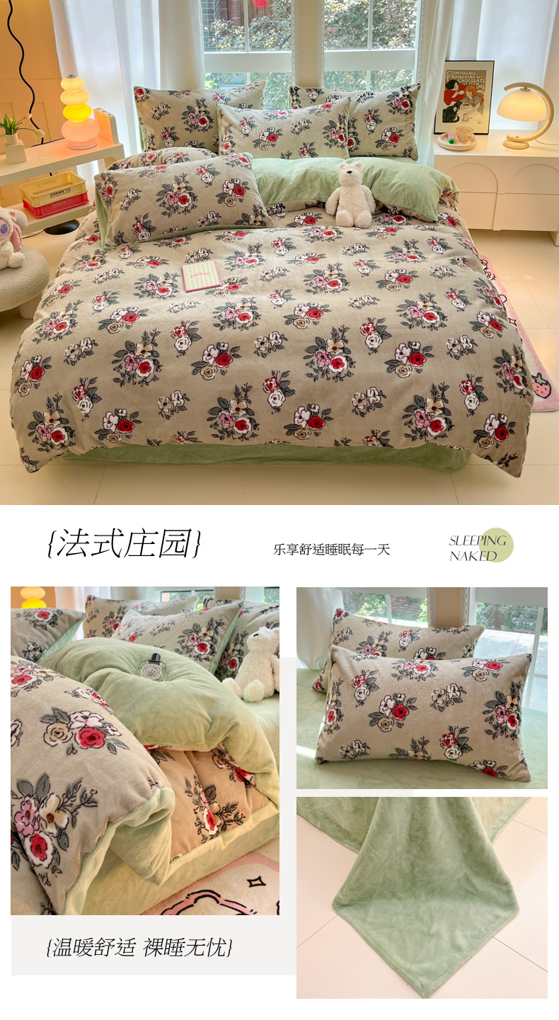 慕澄家纺 2024新款兔绒牛奶绒加厚保暖印花四件套 法式庄园