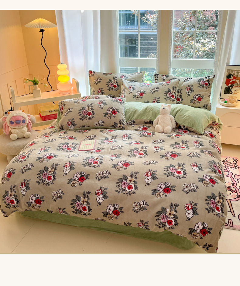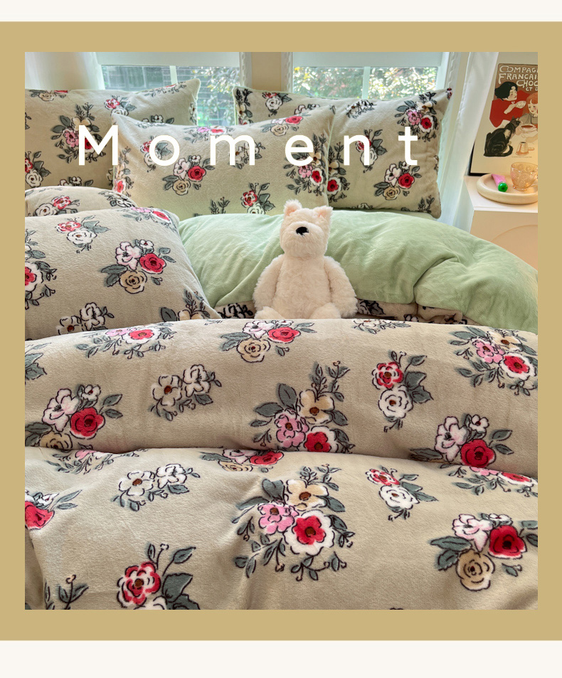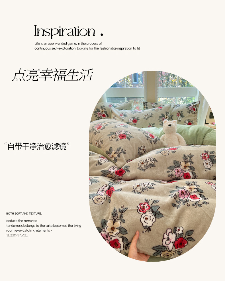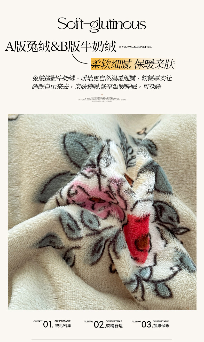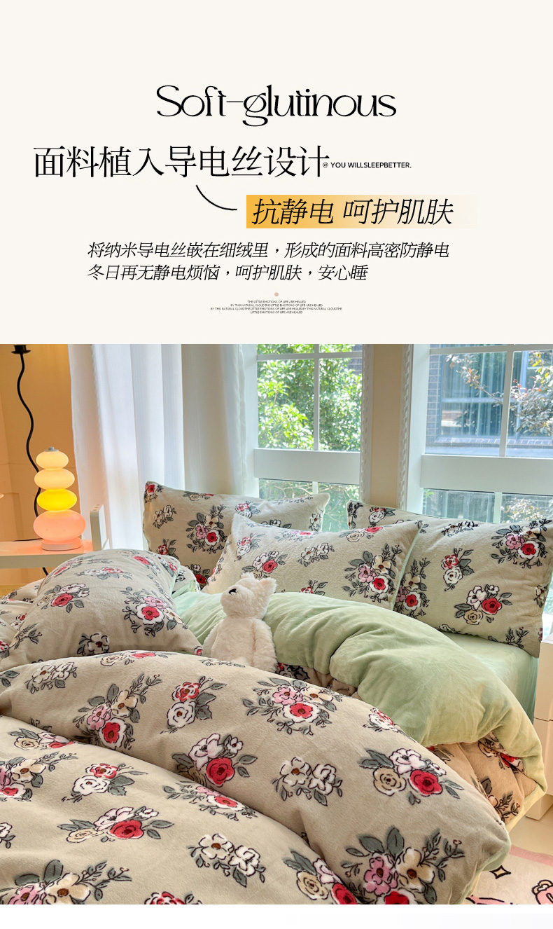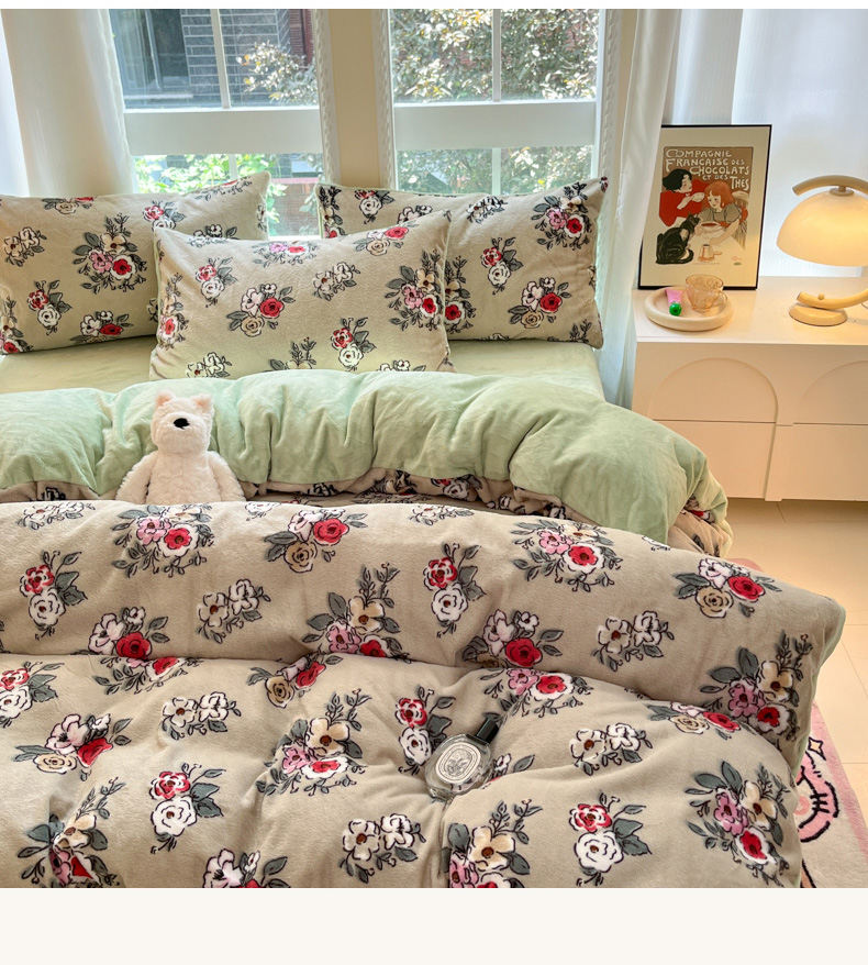 慕澄家纺 2024新款兔绒牛奶绒加厚保暖印花四件套 法式庄园