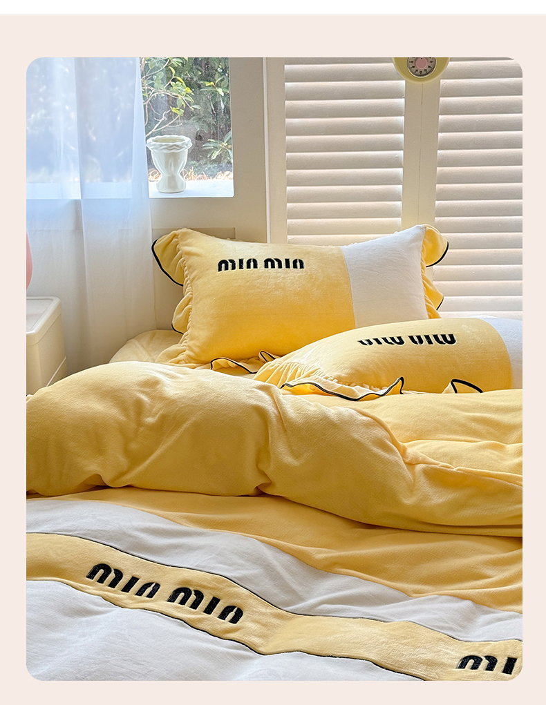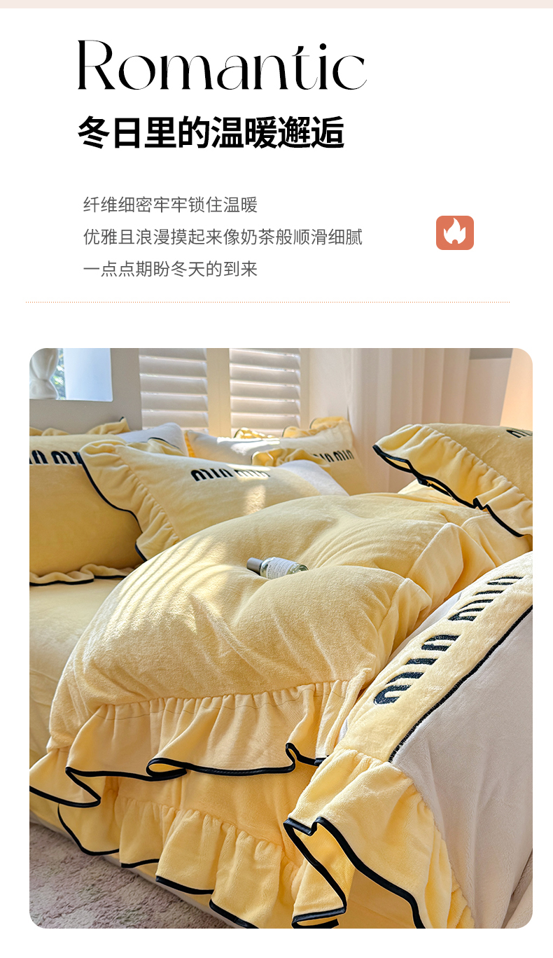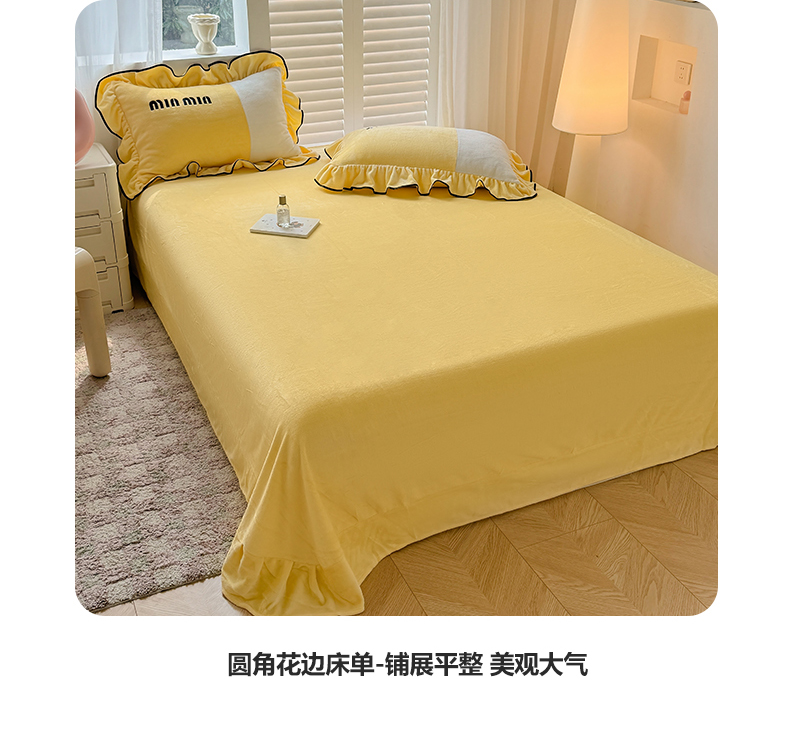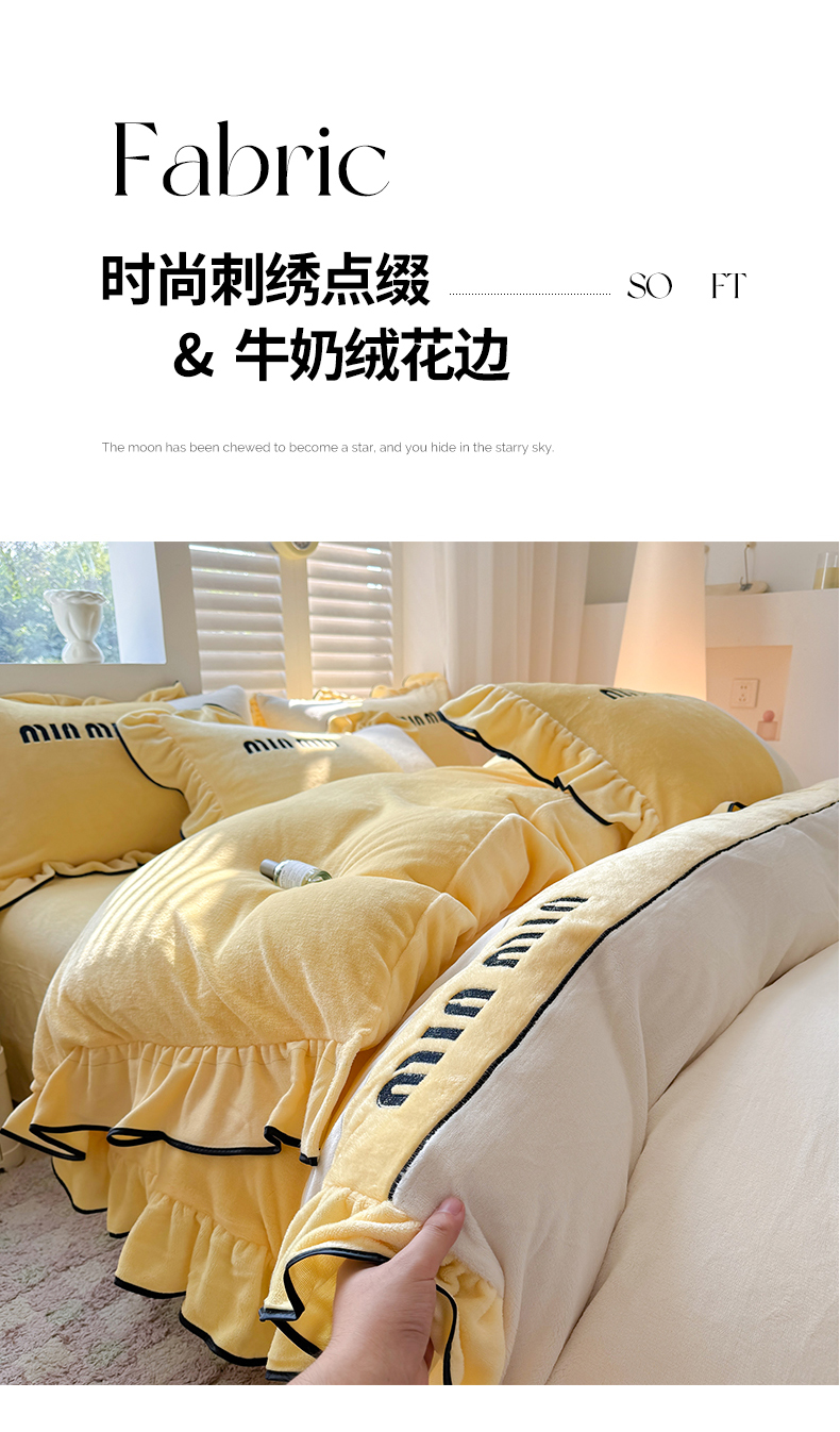 凯美家居 2024新款牛奶绒刺绣花边四件套-美丽格 美丽格-亮黄