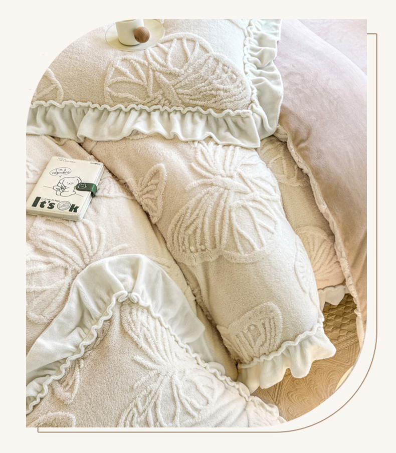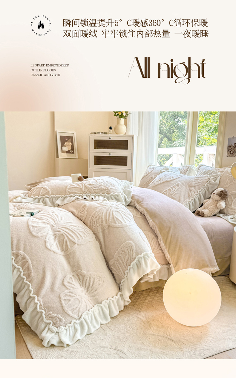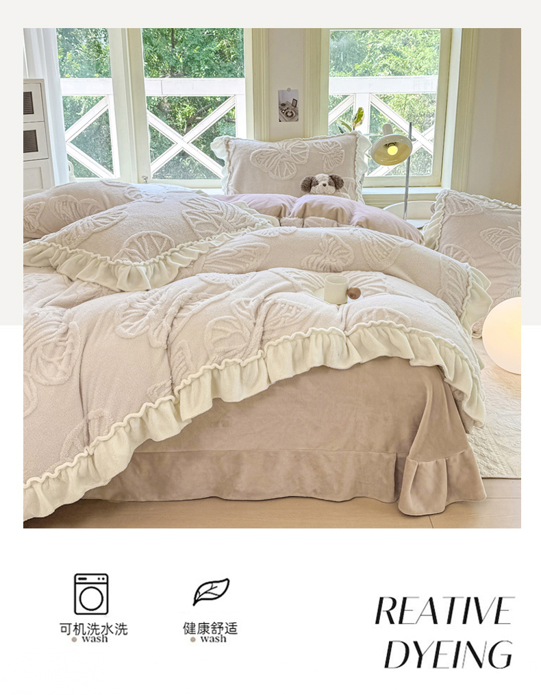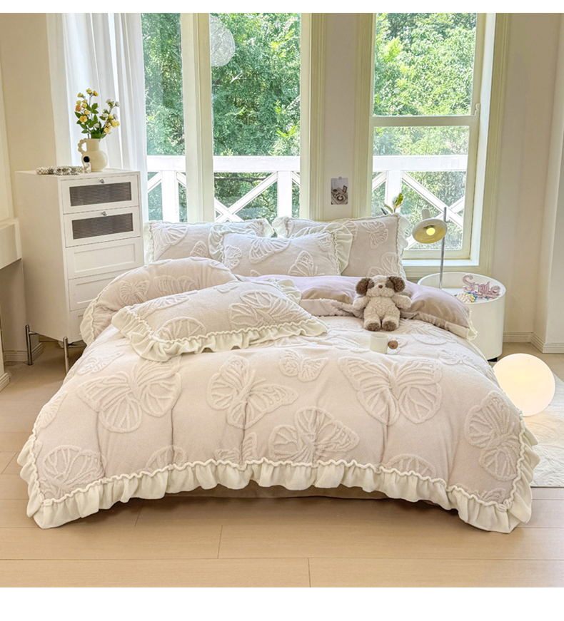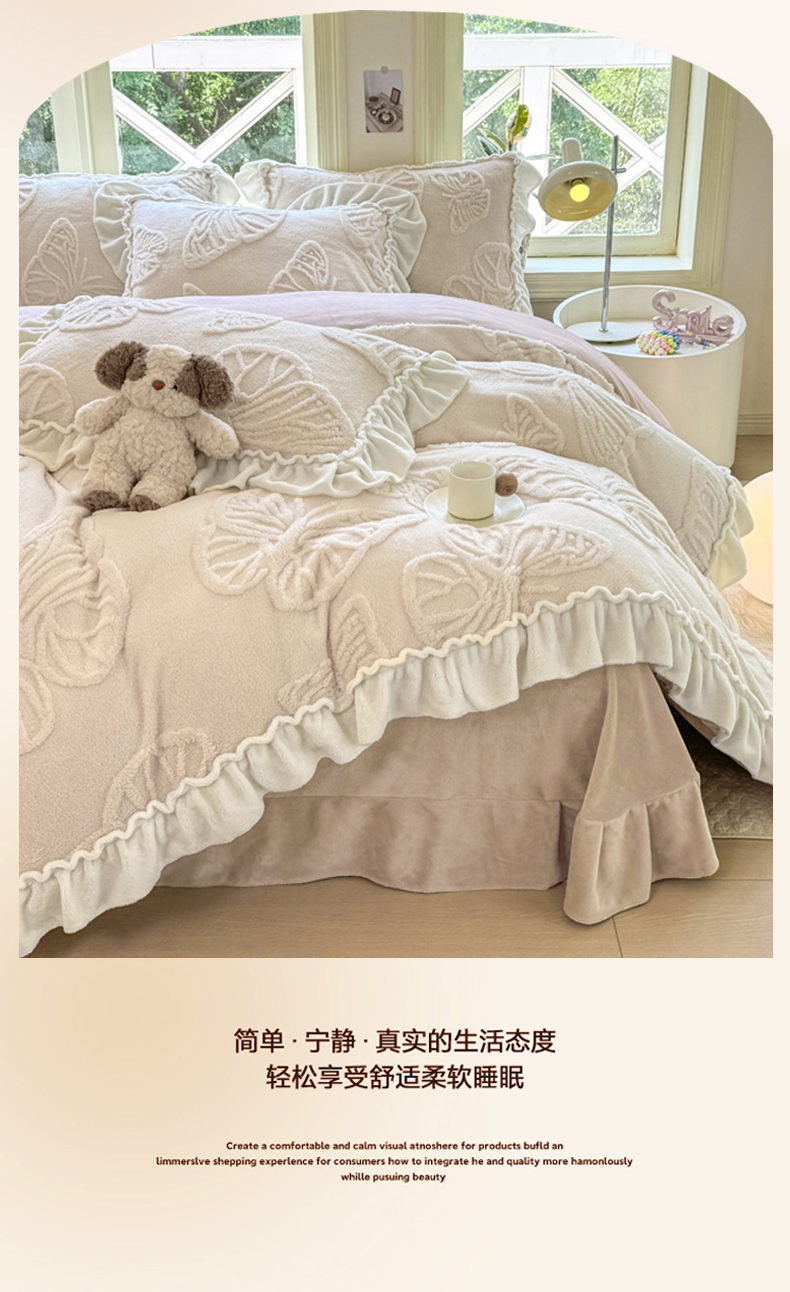蝶帕家纺 2024新款舒棉绒提花塔芙绒四件套-蝶舞 蝶舞-白咖