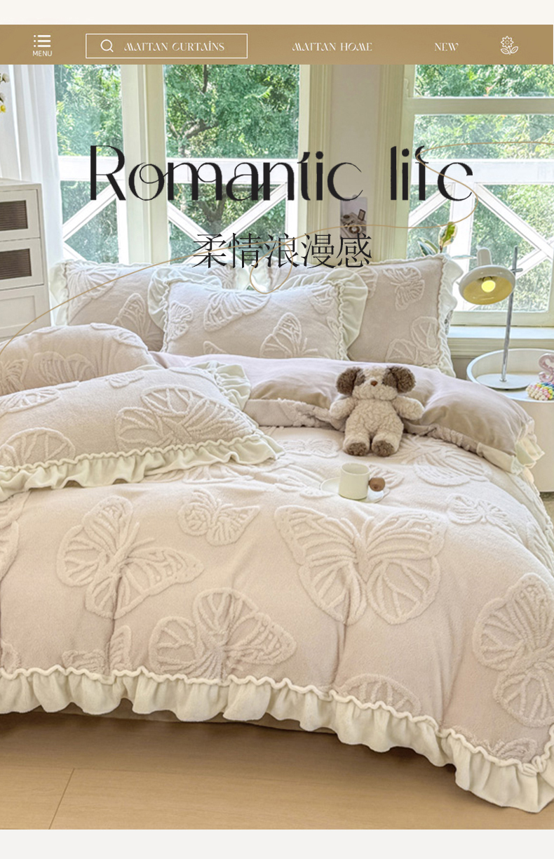 (总)蝶帕家纺 2025新款兔毛绒印花四件套,斑马纹咖,小波点,马格丽,水墨玫瑰,心动,波点咖,红格小黑猫