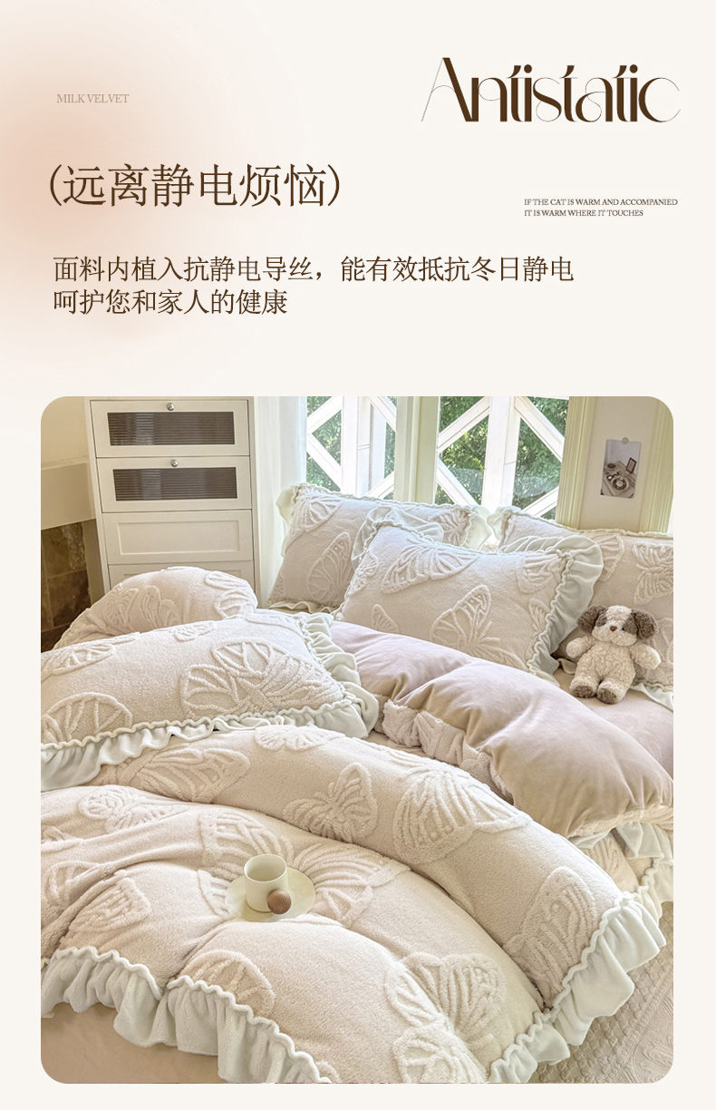 (总)蝶帕家纺 2024新款舒棉绒提花塔芙绒四件套-蝶舞,蝶舞-白咖,蝶舞-豆沙粉,蝶舞-咖色,蝶舞-牛油果绿,蝶舞-绅士灰,蝶舞-香芋紫