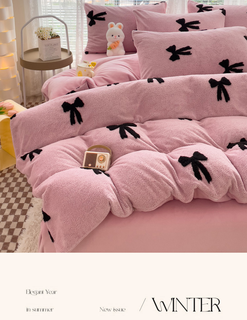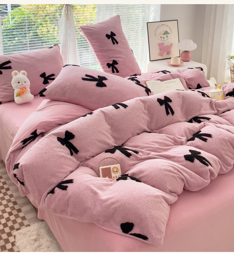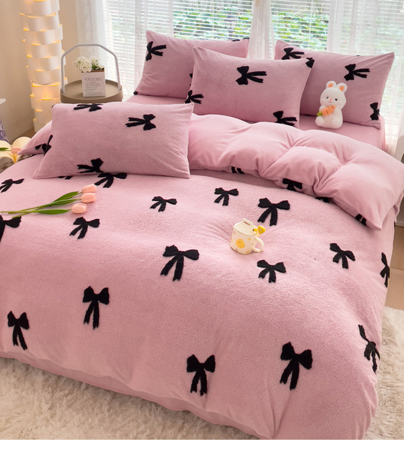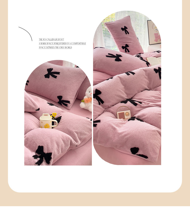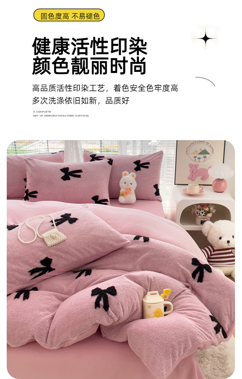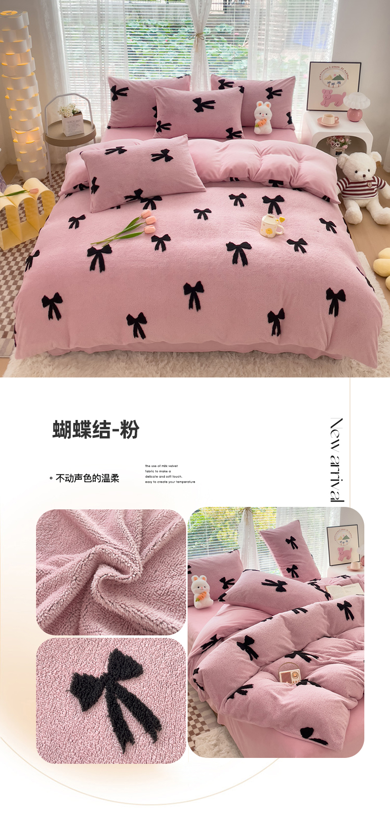 蝶帕家纺 2024新款阳离子提花舒棉绒四件套 蝴蝶结-粉