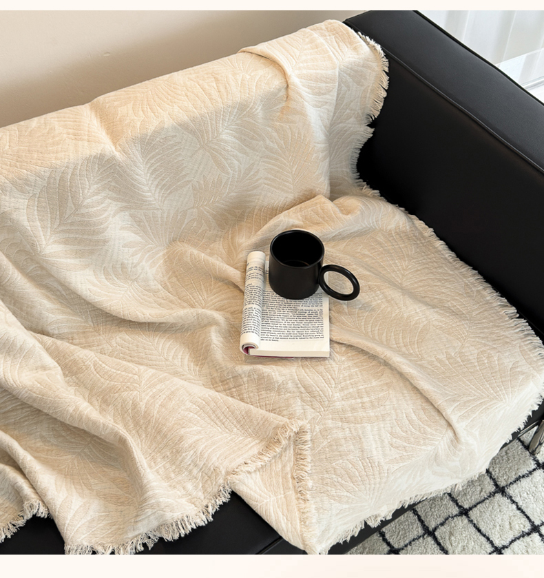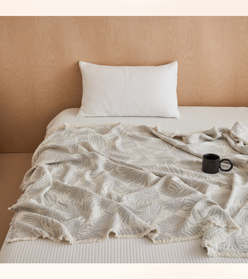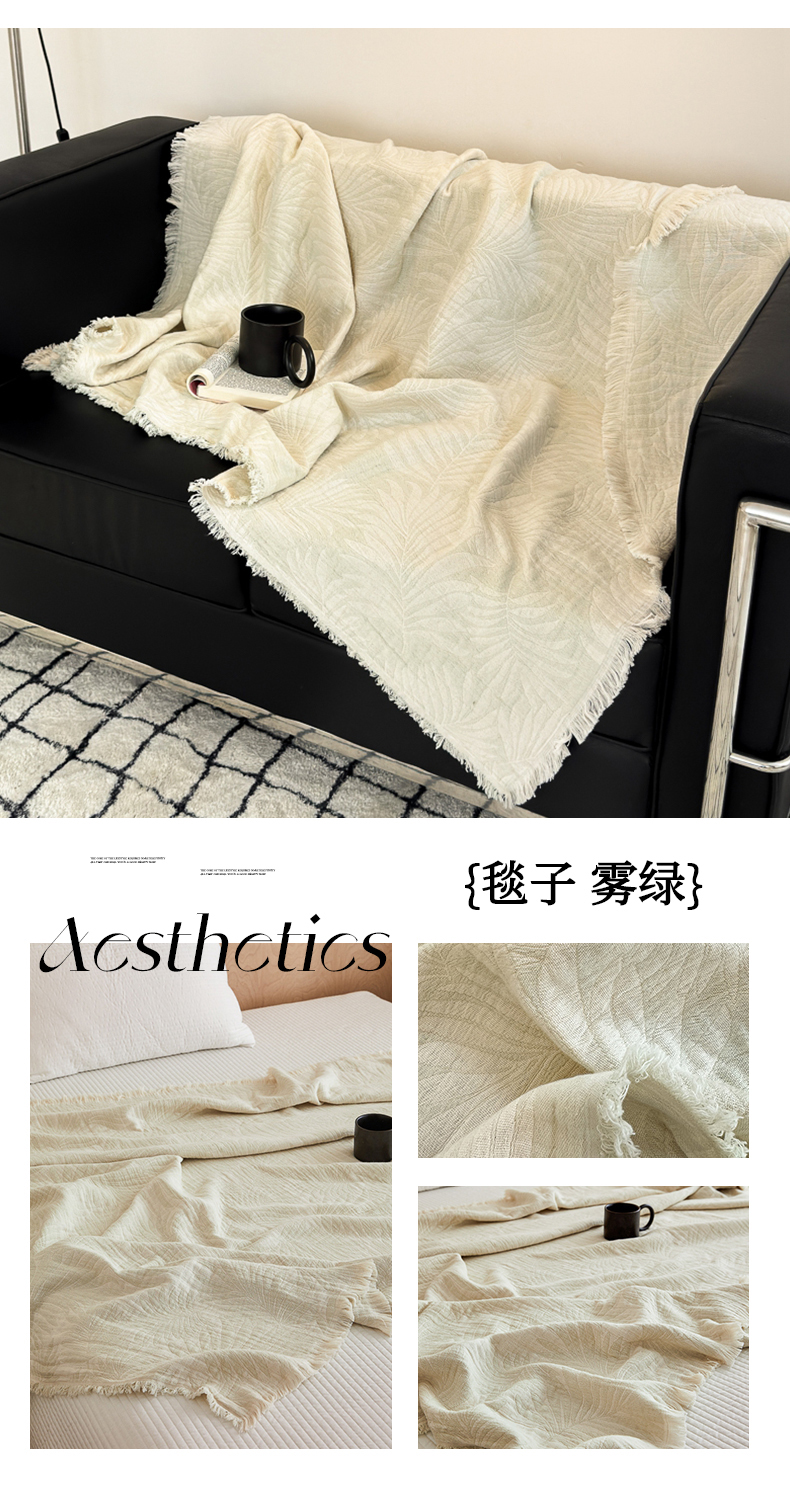 商品名称:淑女公社家纺 2024新款色织全棉双股提花流苏盖毯 雾绿