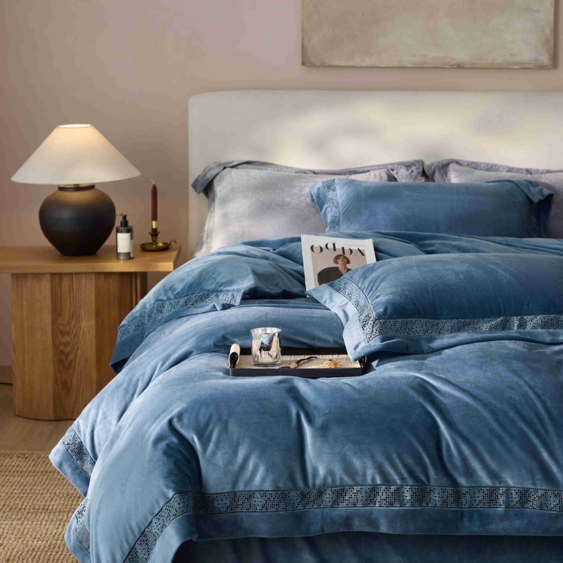 榻尚家居 2024新款秋冬婴肤绒四件套-柔梦系列 柔梦-蓝