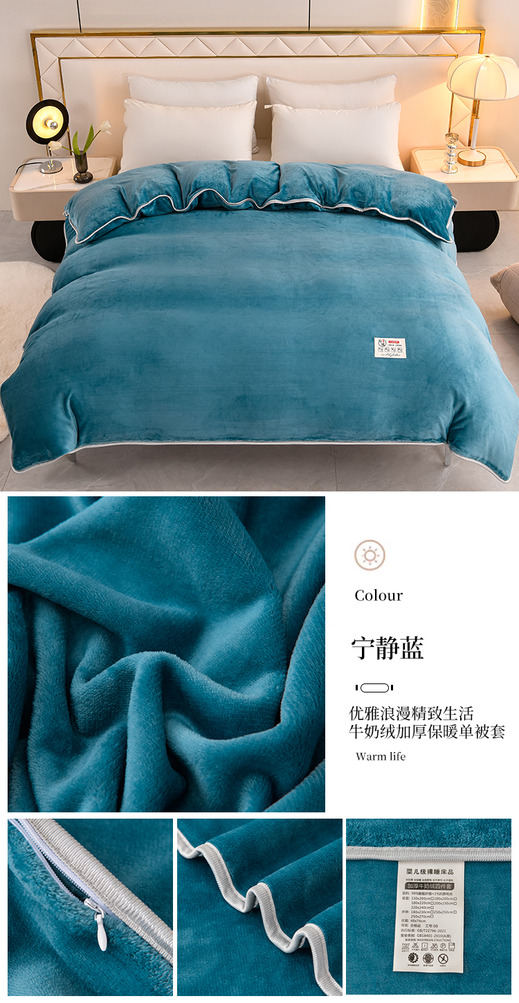 商品名称:绒品荟家纺 2025新款加厚牛奶绒单被套金貂绒法莱绒冬季法兰绒高克重被罩 宁静蓝