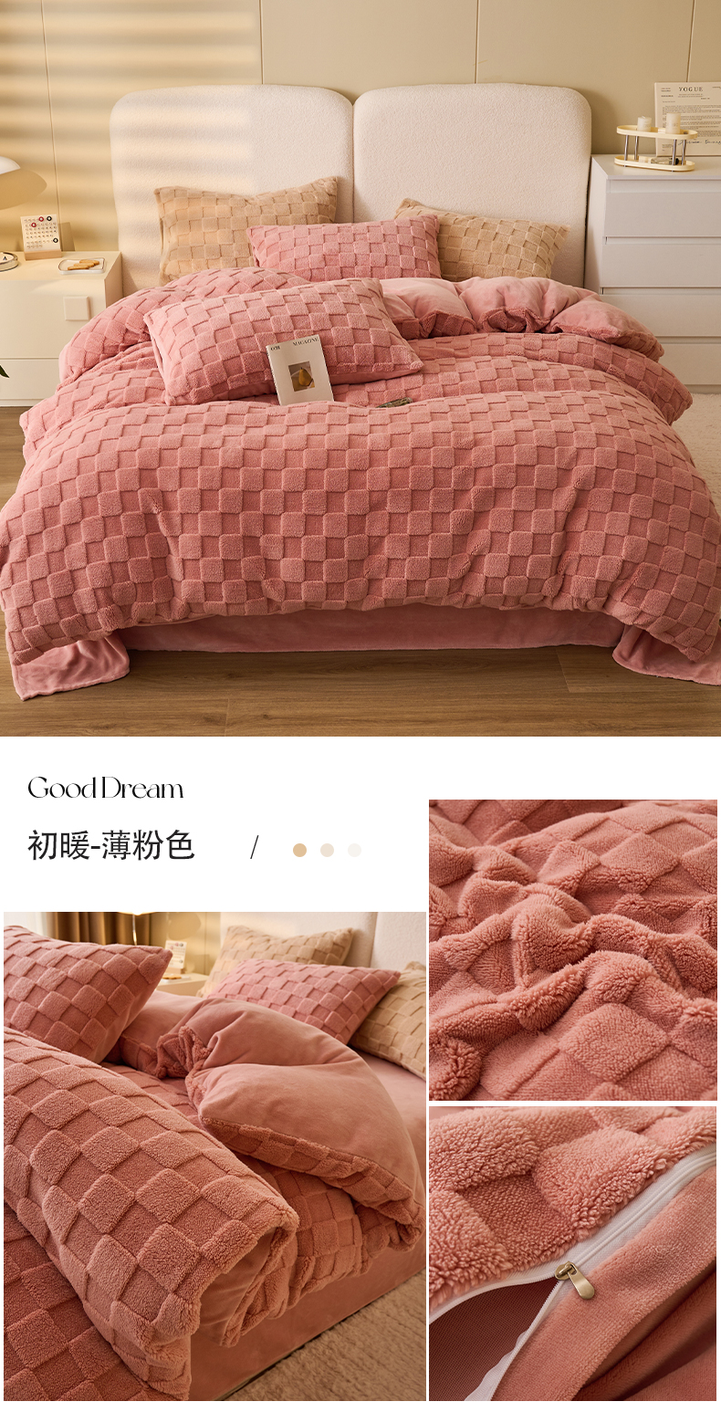 • 91家纺网 家纺一手货源 找家纺 2024新款塔芙绒牛奶绒可拆洗冬被-初暖系列 初暖-薄粉色