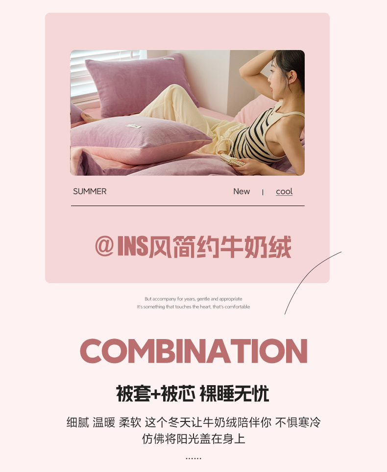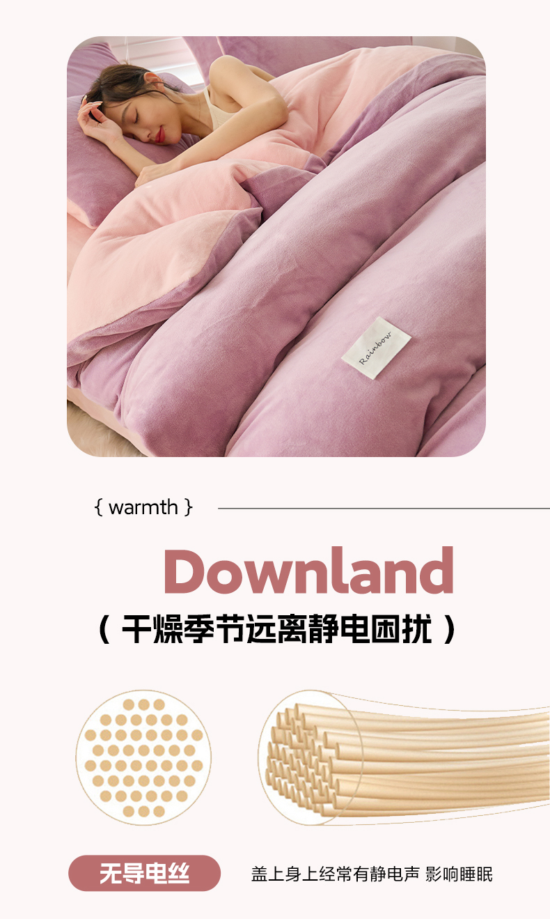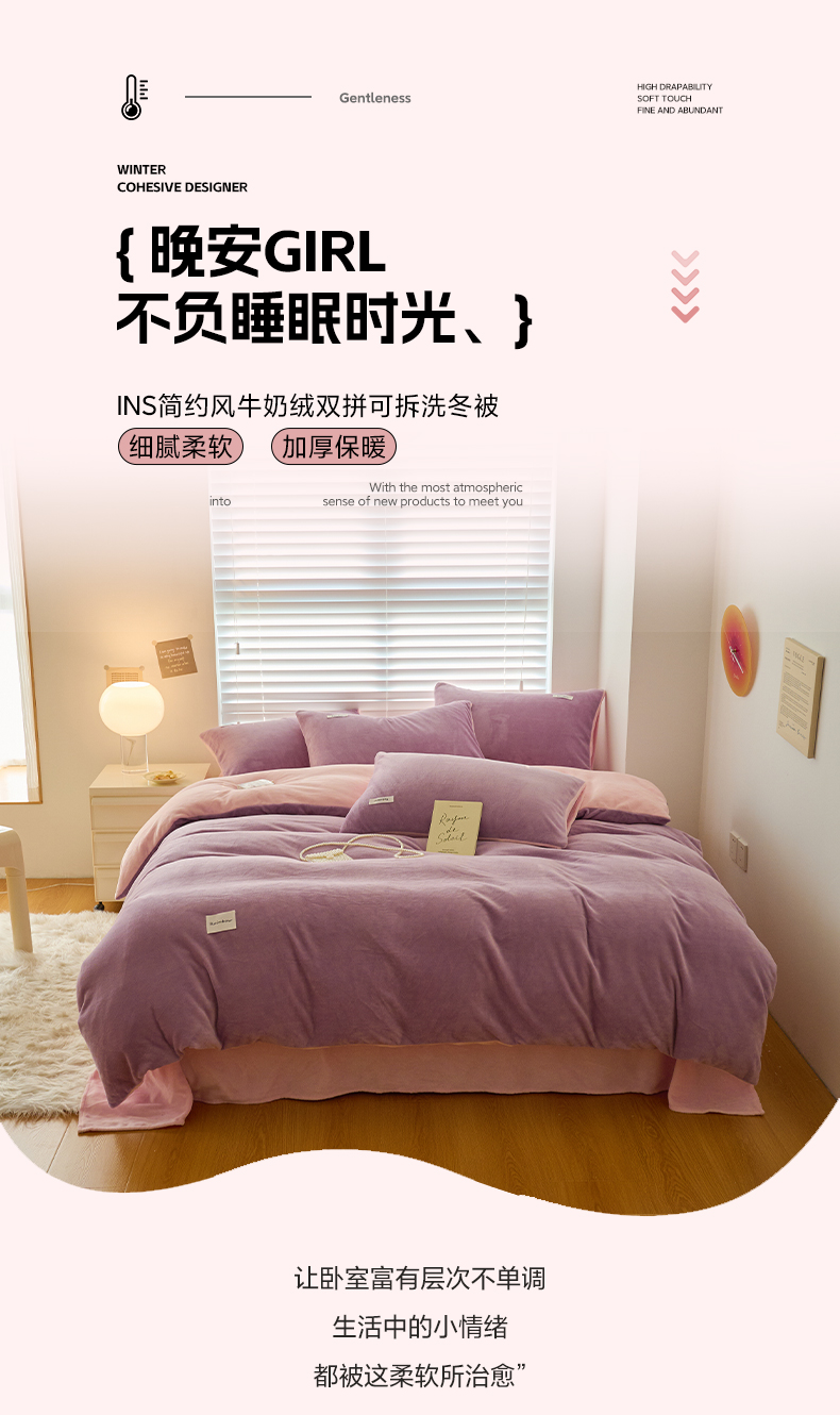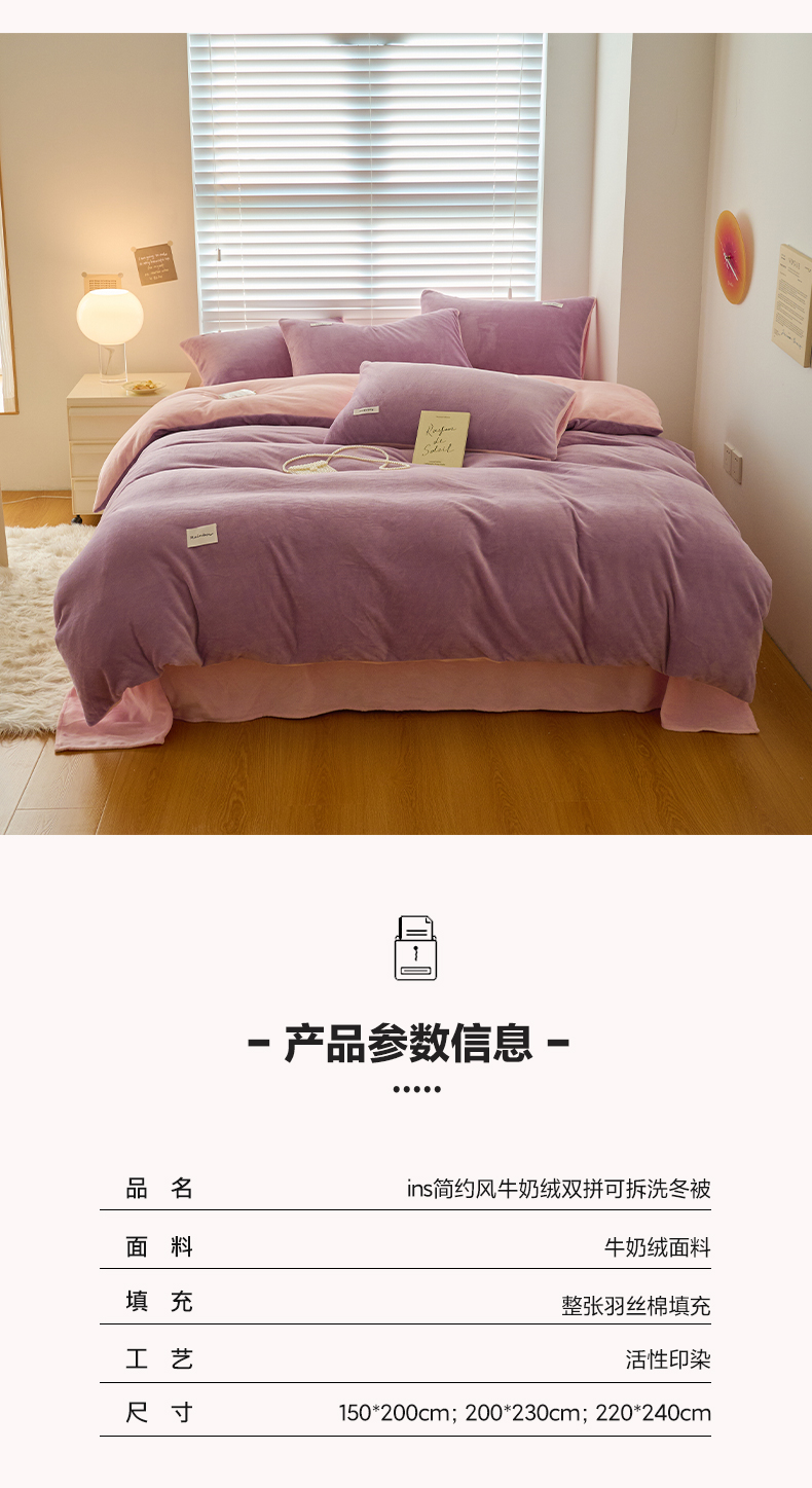 • 91家纺网 家纺一手货源 找家纺 2024新款ins简约风牛奶绒双拼可拆洗冬被 被子被芯 糯糯紫粉