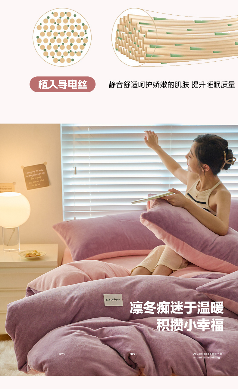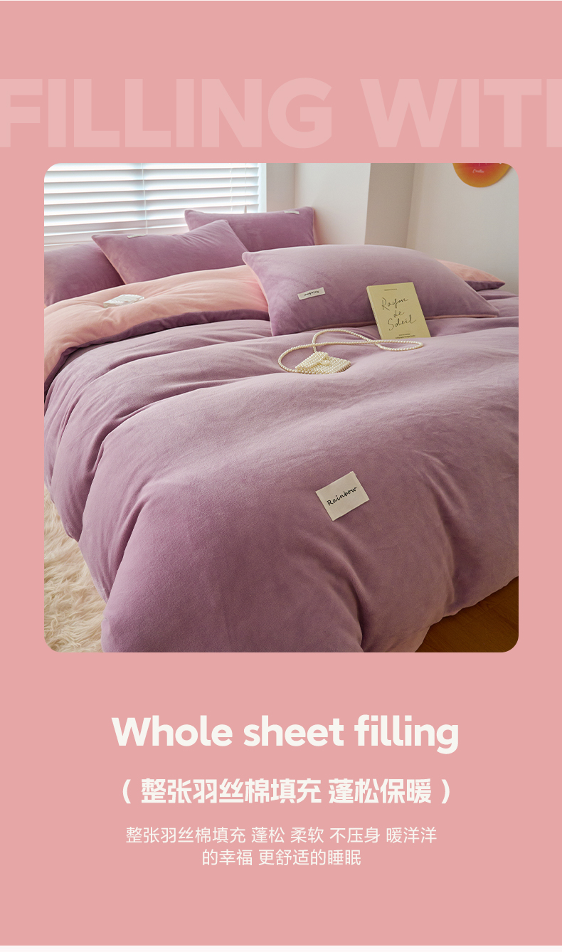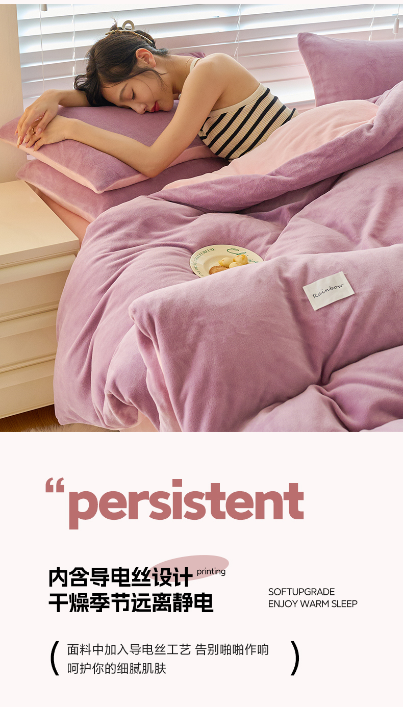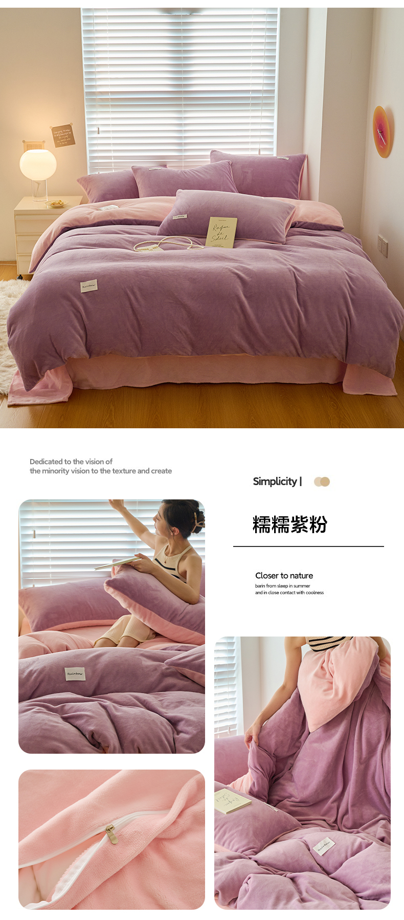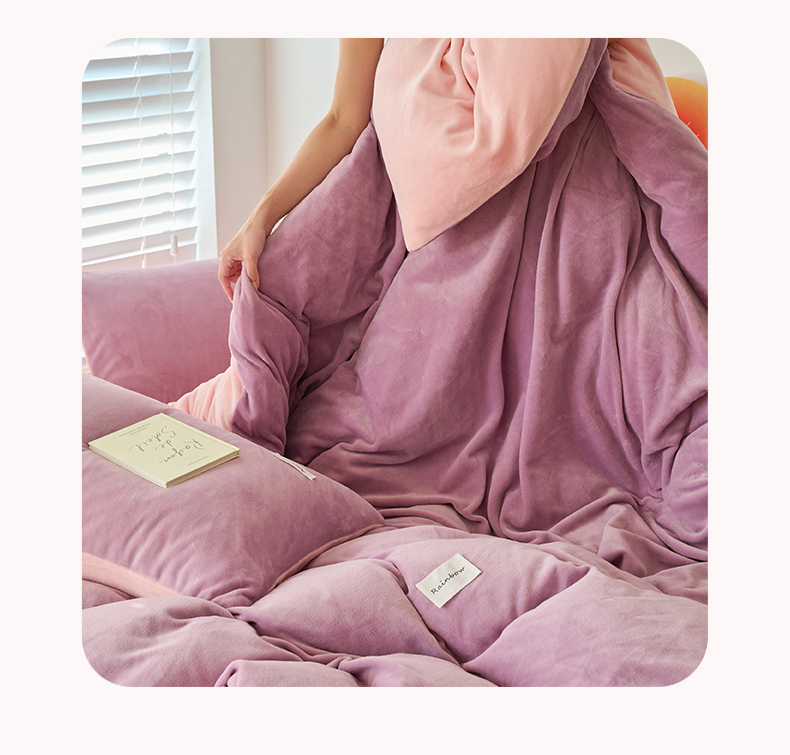 2024新款ins简约风牛奶绒双拼可拆洗冬被 被子被芯 糯糯紫粉
