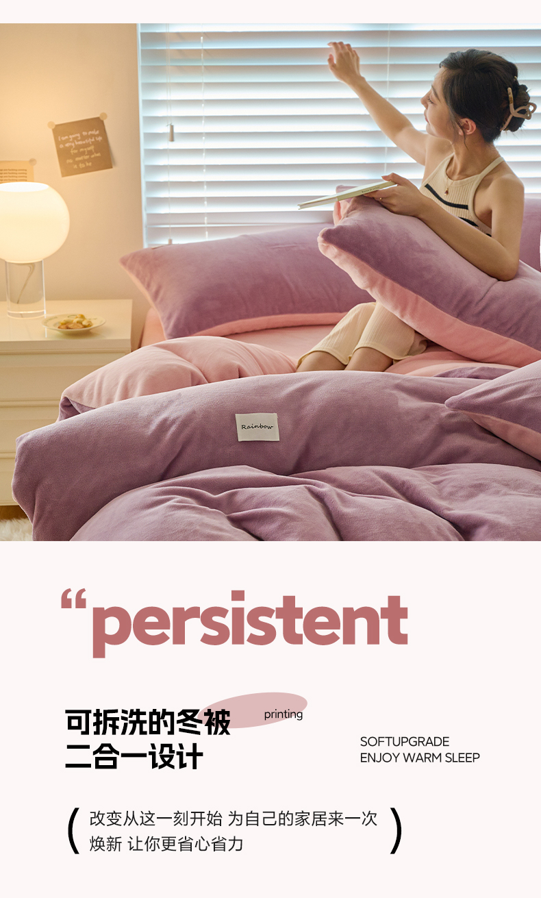 当前位置: 91家纺网 > 商品网购 > 被子 > 冬被 > 2024新款ins简约风牛奶绒双拼可拆洗冬被 被子被芯 糯糯紫粉
