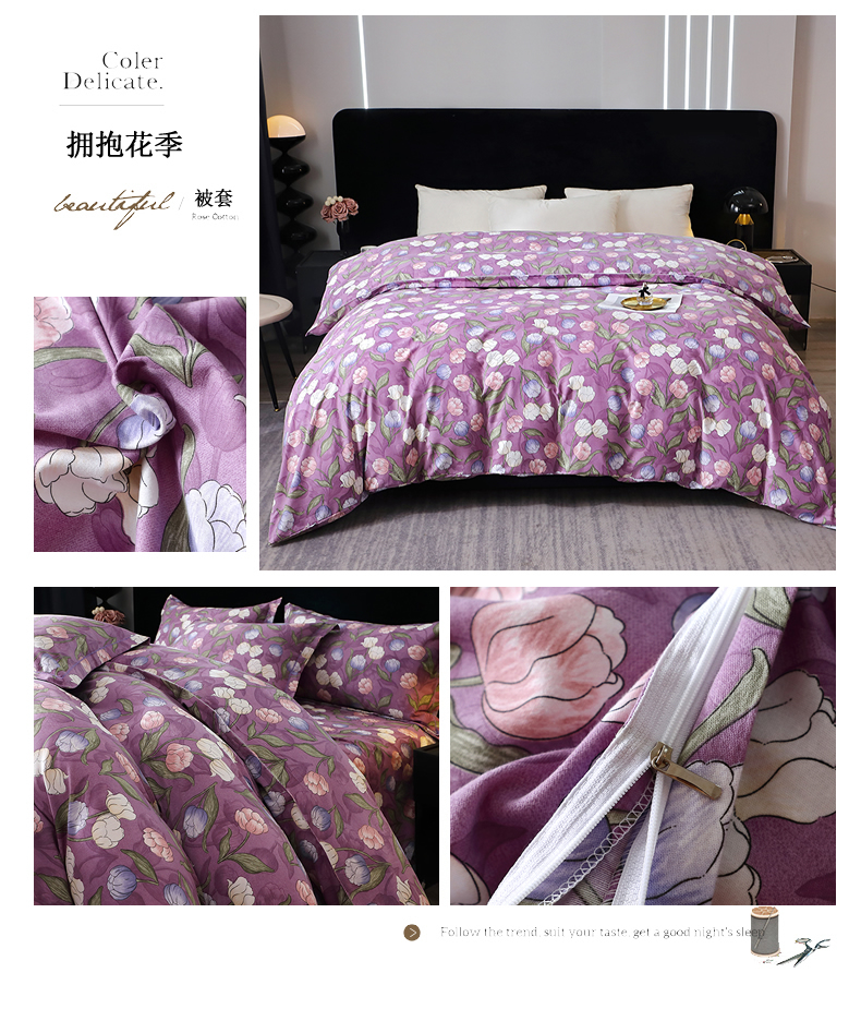 晶缦家纺 2024新款叶语系纯棉全棉生态磨毛多规格单被套 拥抱花季