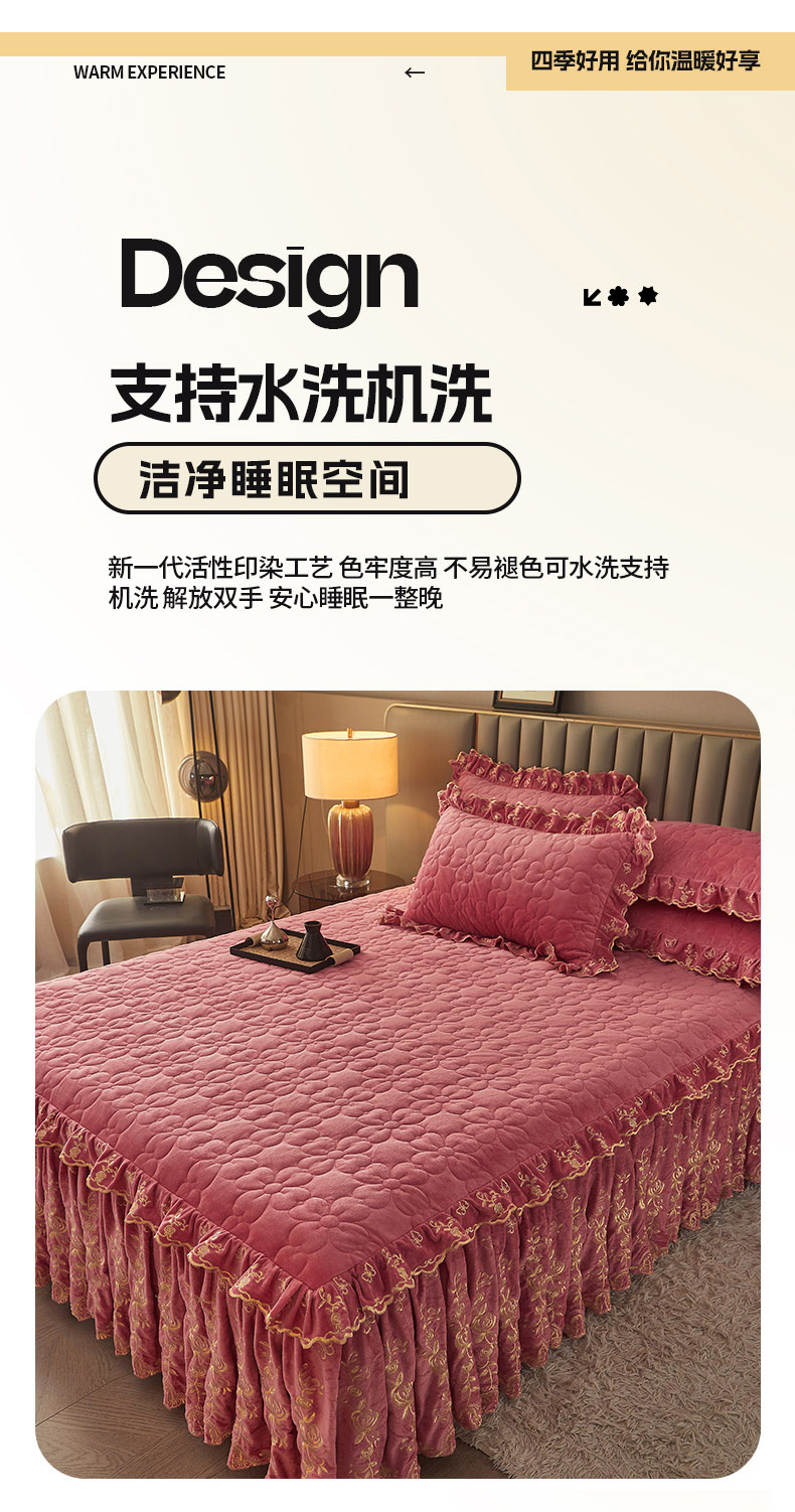 (总)恋尚 2025新款加厚牛奶绒保暖床笠式床裙单品床裙床裙单件-莫奈花园(床裙控价130起),莫奈花园-蜜桃粉,莫奈花园-奶油白,莫奈花园-清新粉,莫奈花园-香芋紫,莫奈花园-椰蓉灰