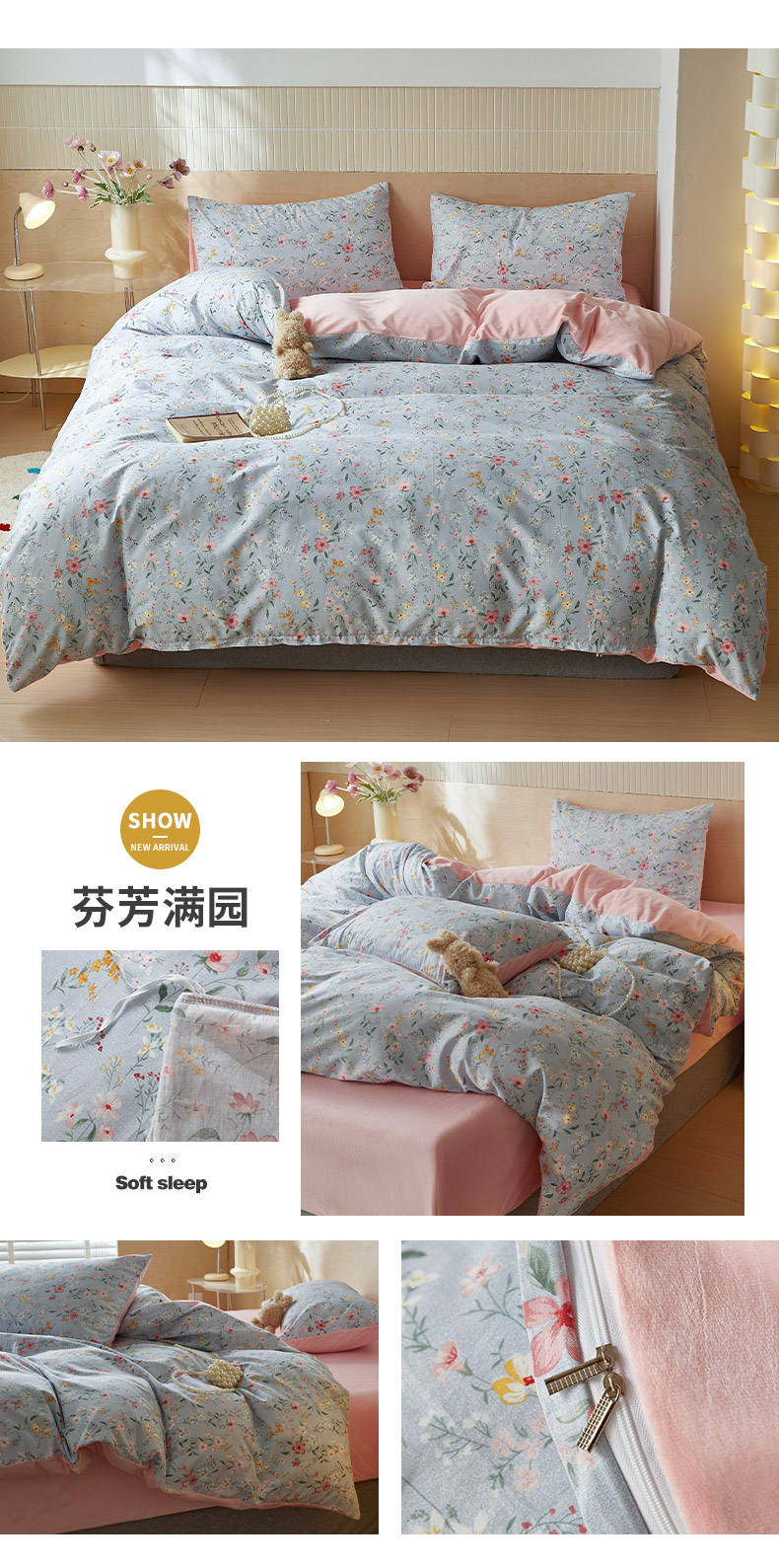 怡家居 2024秋冬新品AB版加厚保暖全棉加绒四件套 芬芳满园