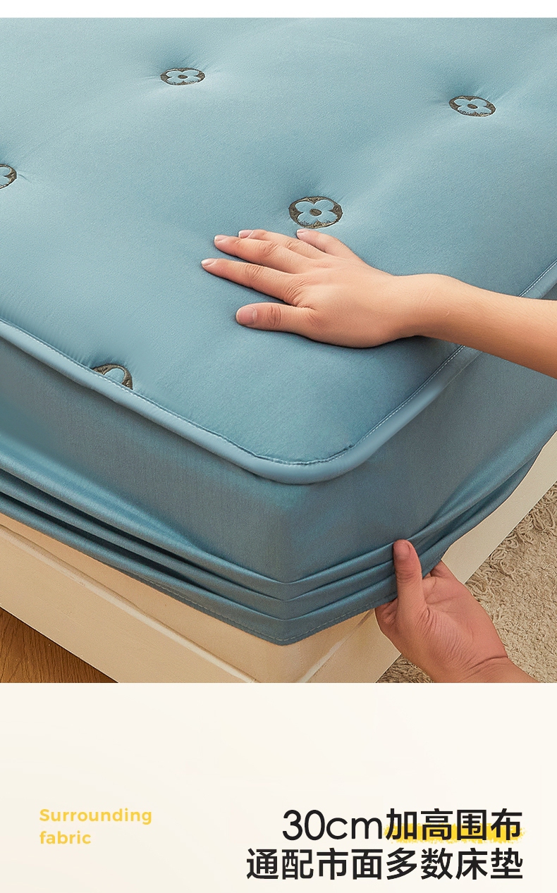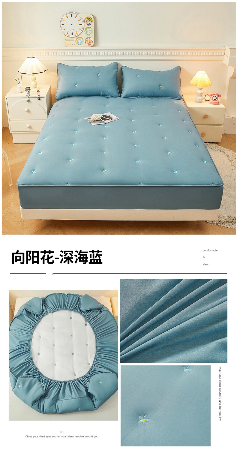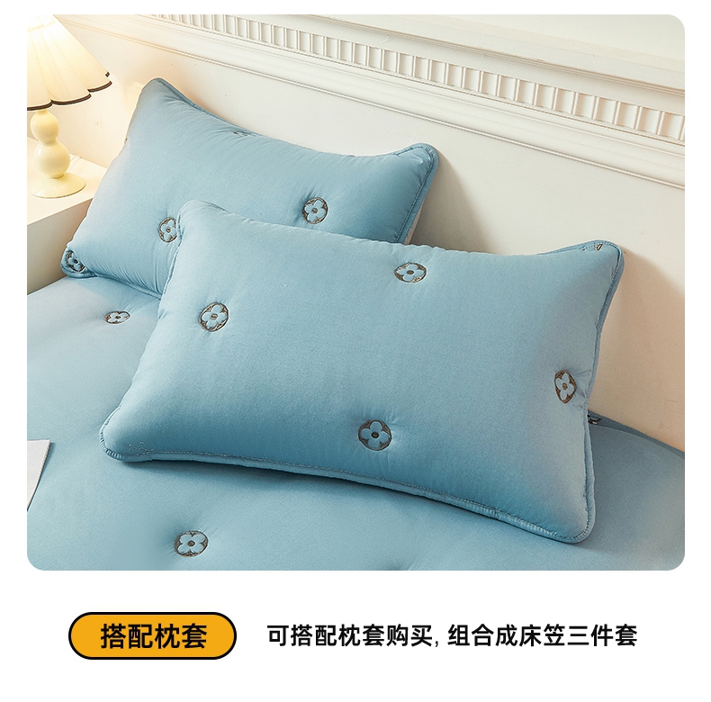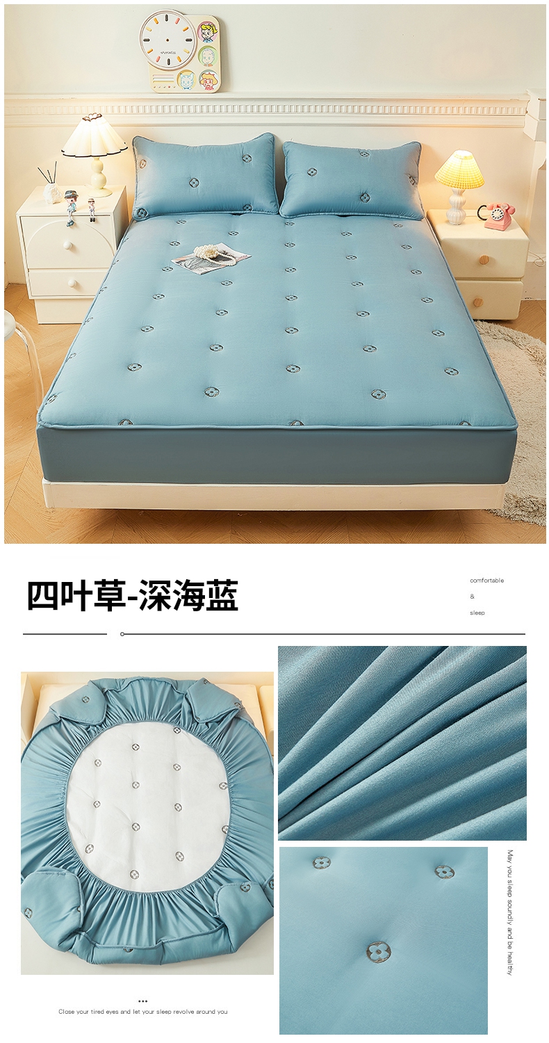 商品名称:2025新款A类水洗棉大豆刺绣床笠 四叶草-深海蓝