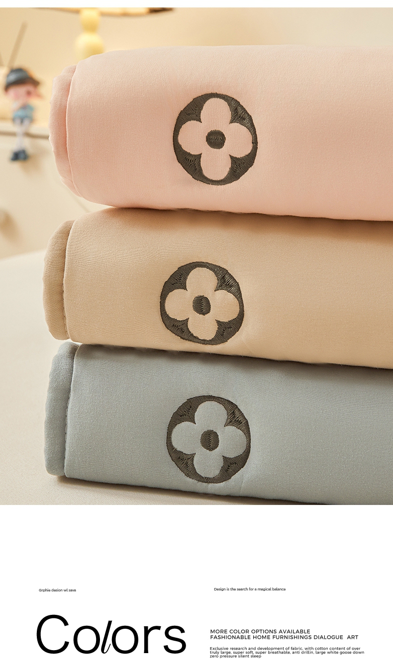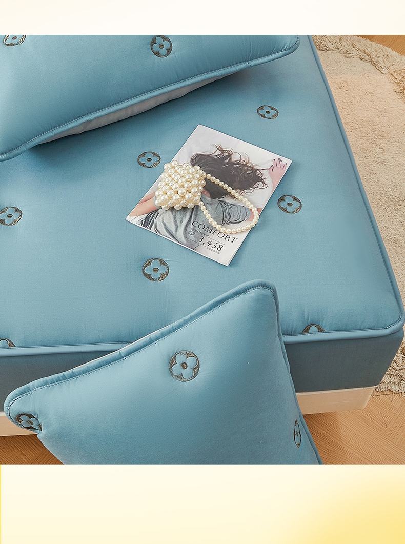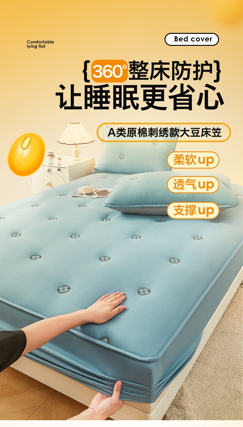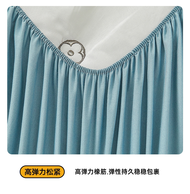 商品名称:2025新款A类水洗棉大豆刺绣床笠 四叶草-深海蓝