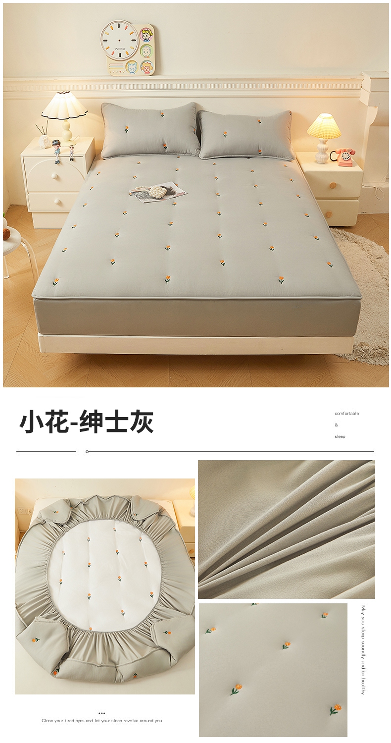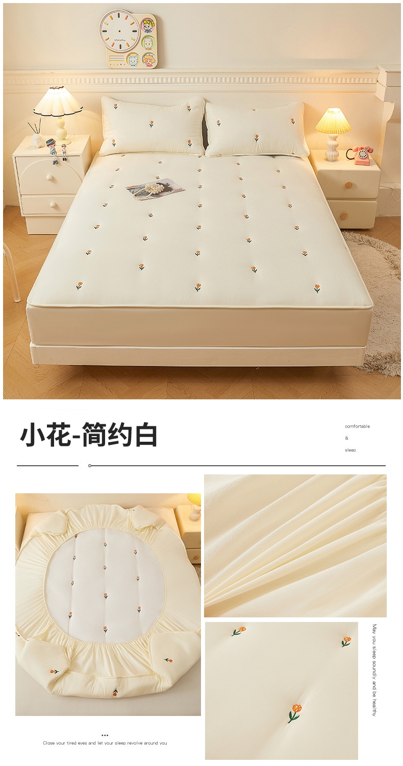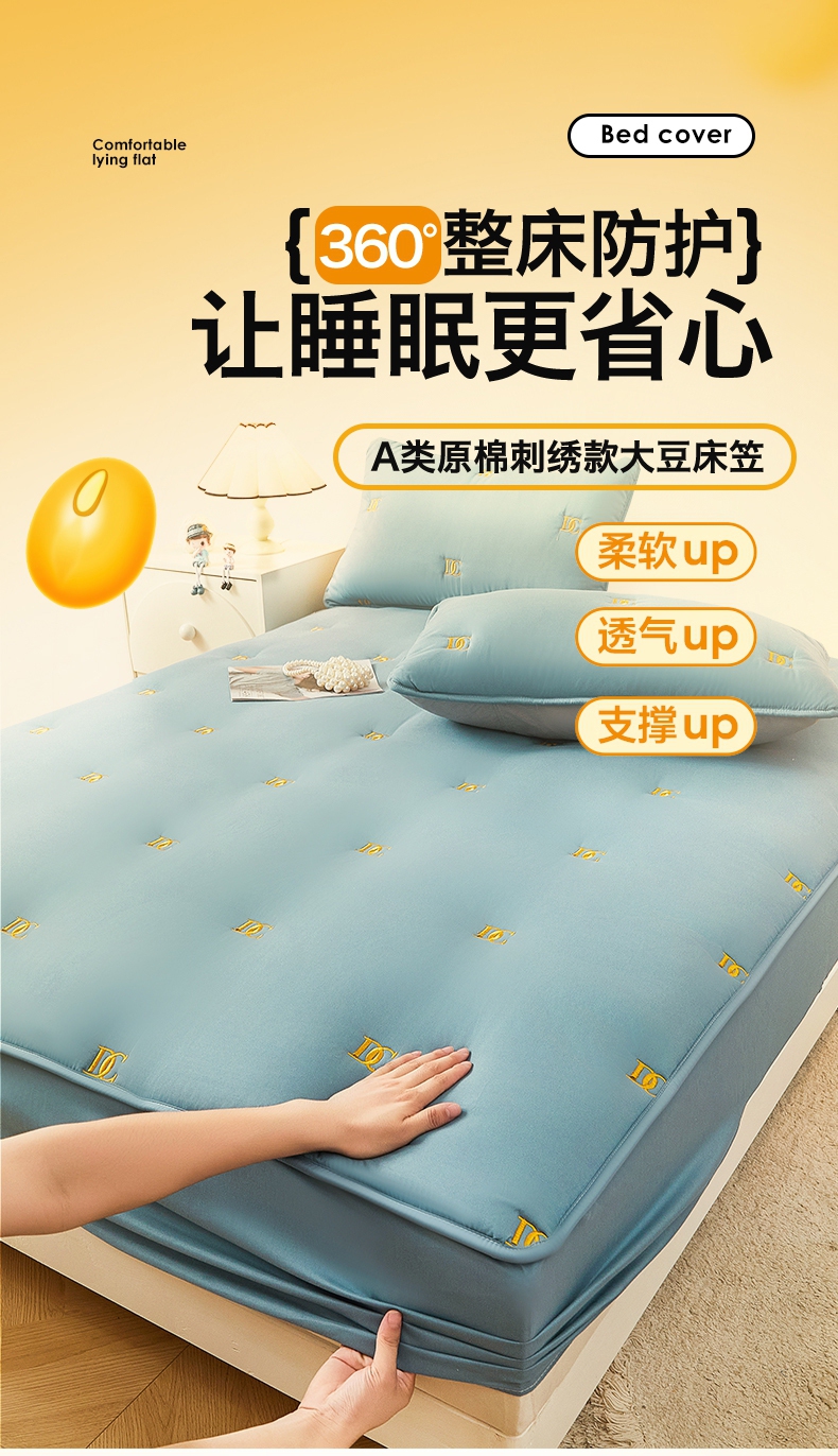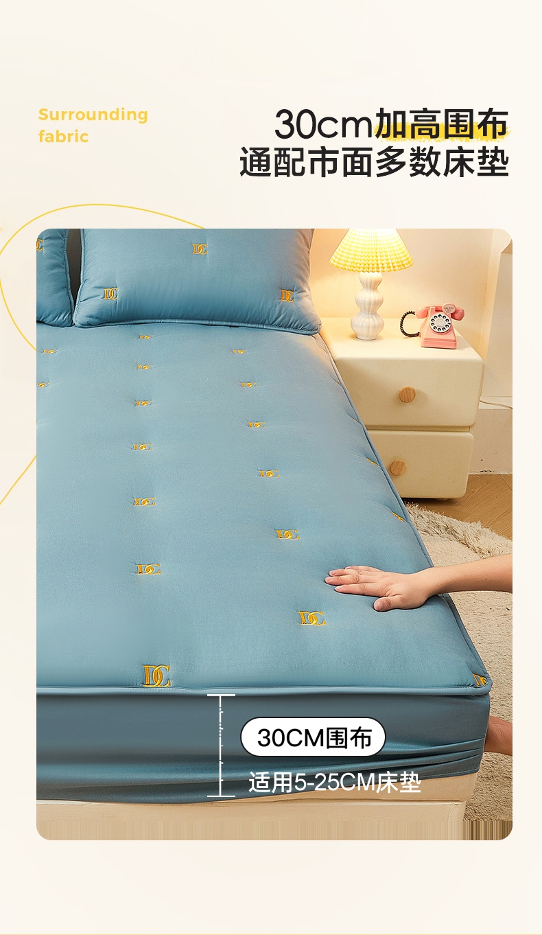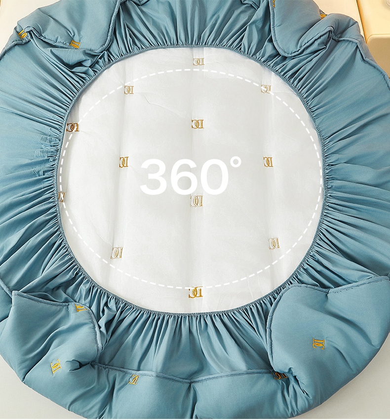 商品名称:2025新款A类水洗棉大豆刺绣床笠 DC-深海蓝