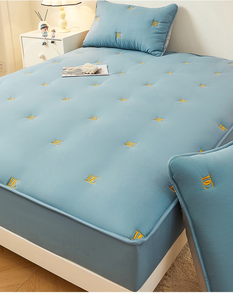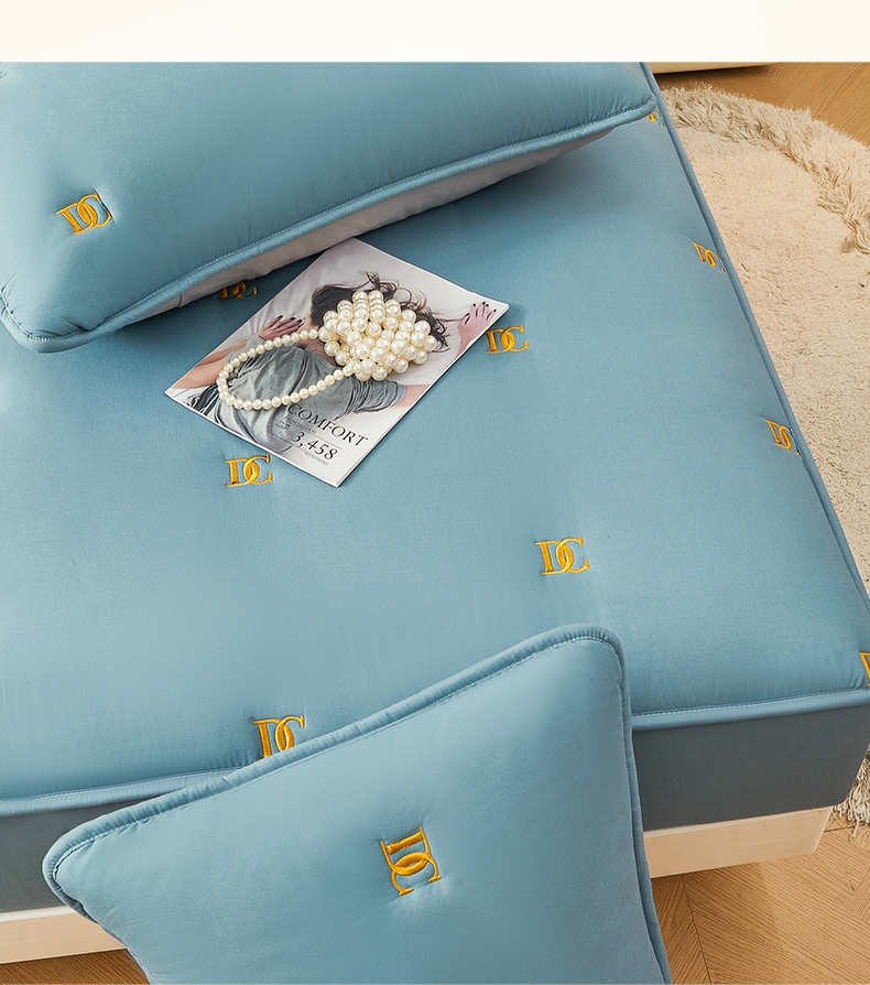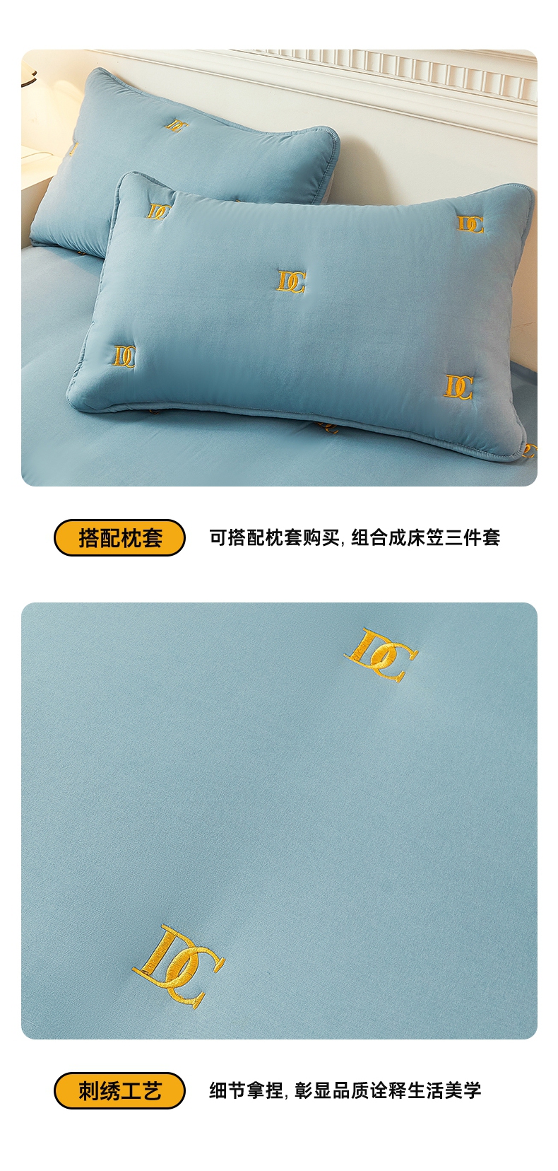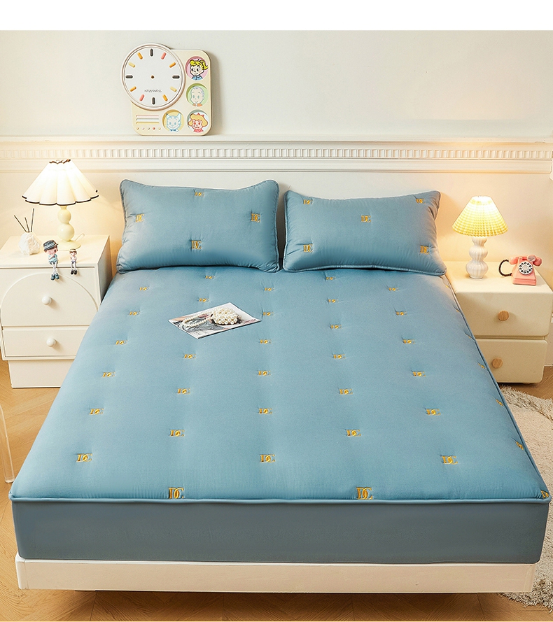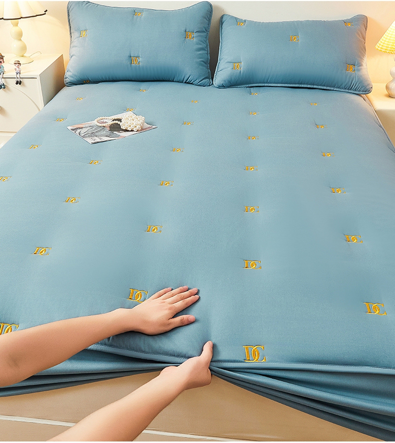 2025新款A类水洗棉大豆刺绣床笠 DC-深海蓝