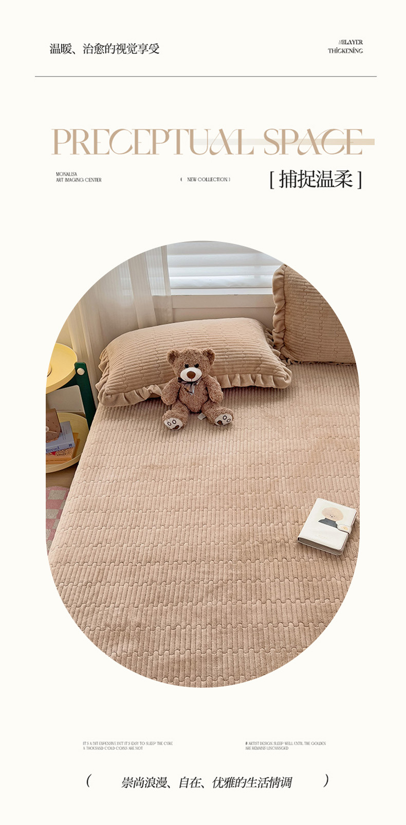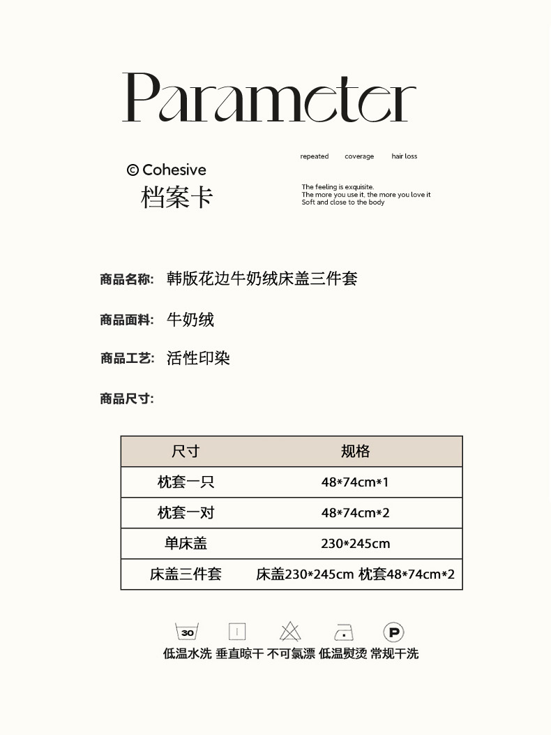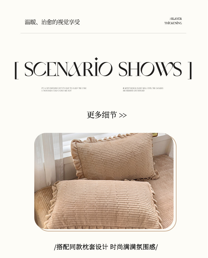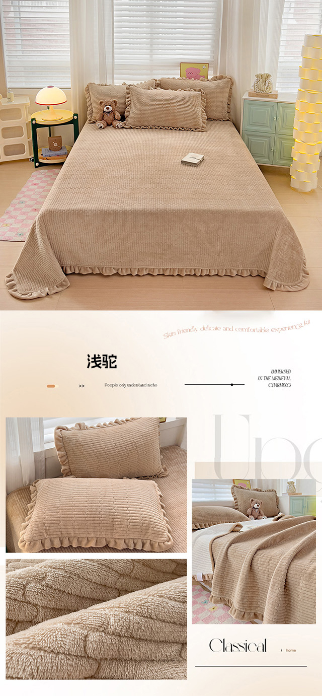 商品名称:富瑞阁 2024新款牛奶绒宝宝绒韩版花边床盖三件套单品 浅驼