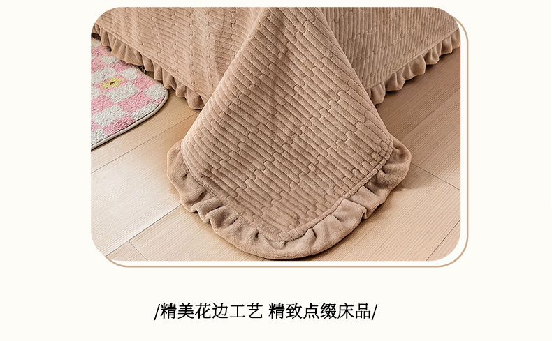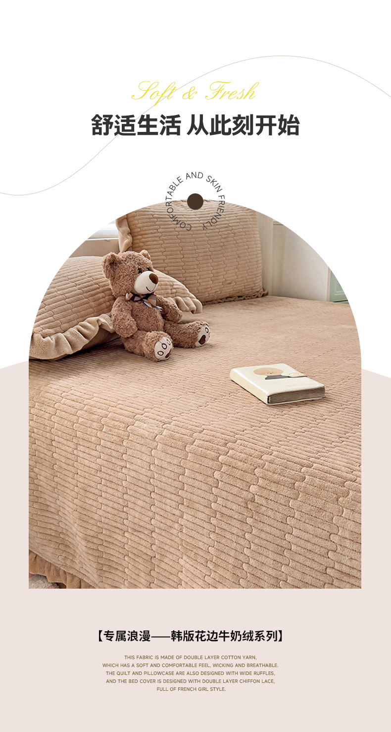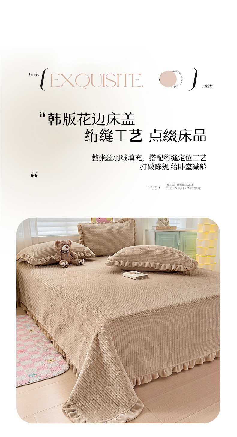 (总)富瑞阁 2024新款牛奶绒宝宝绒韩版花边床盖三件套单品,粉豆沙,粉色,芙蓉绿,浅灰,浅驼,深驼