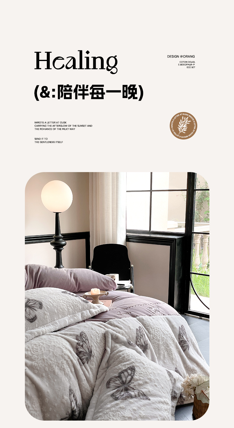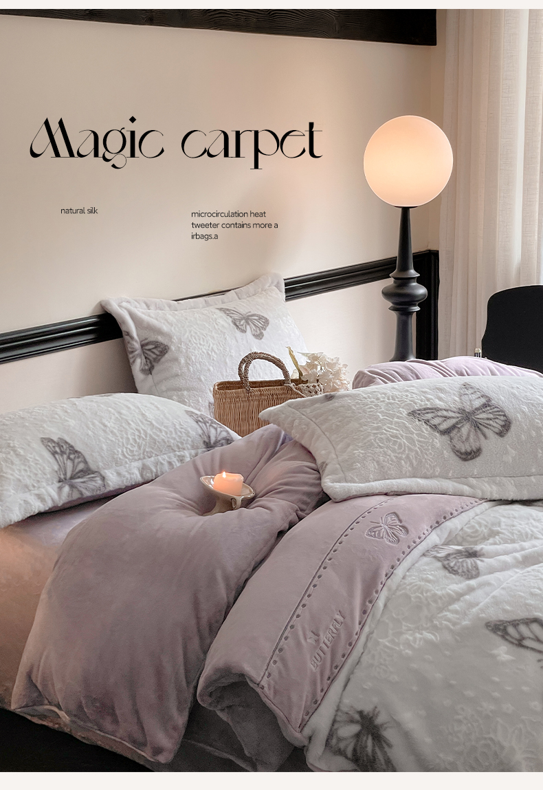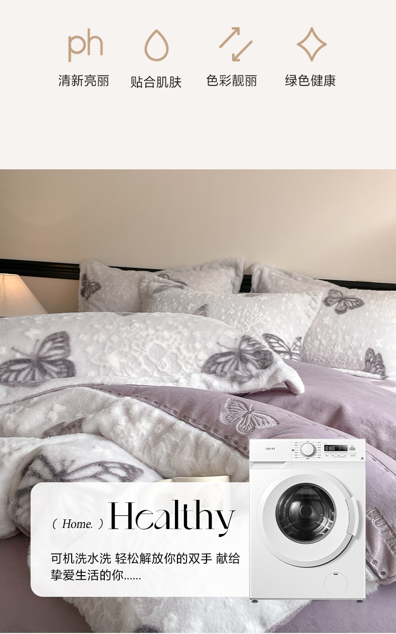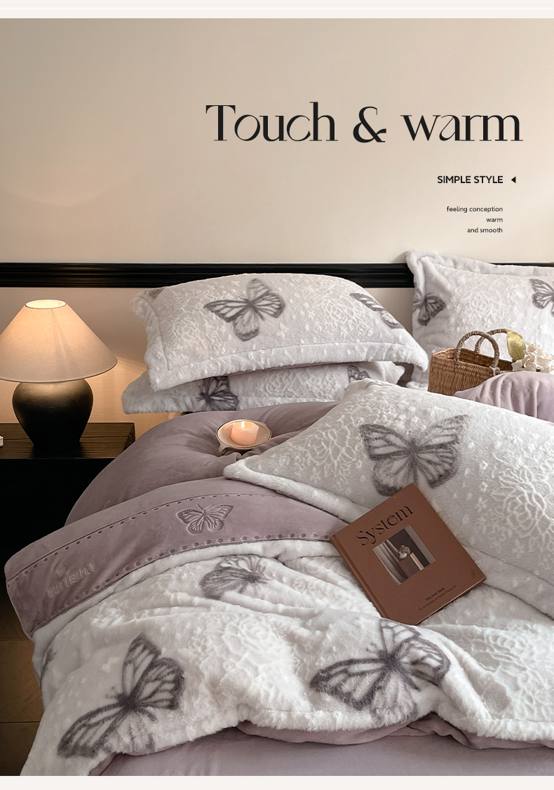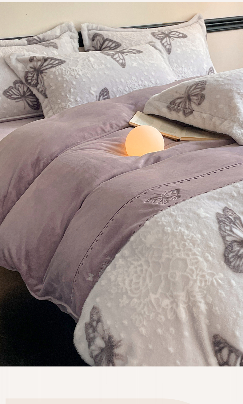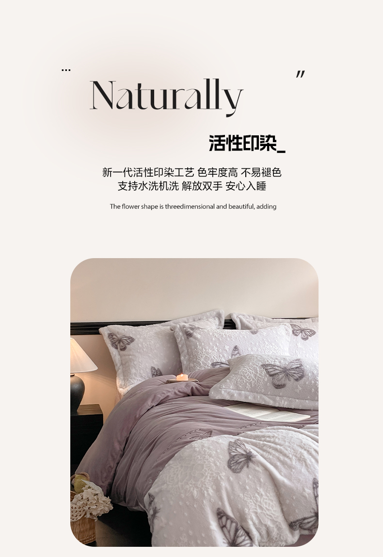 卡巴伦家纺 2024新款兔毛烂花拼接刺绣四件套 蝴蝶-紫