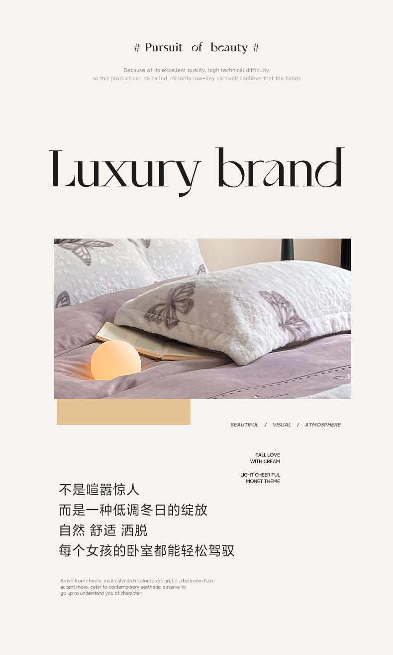 商品名称:卡巴伦家纺 2024新款兔毛烂花拼接刺绣四件套 蝴蝶-紫