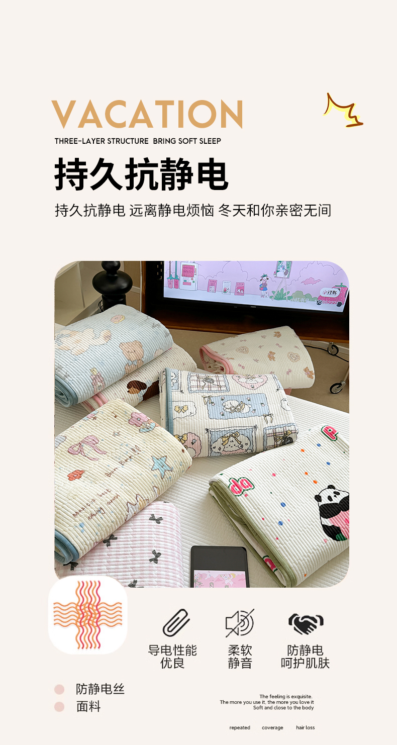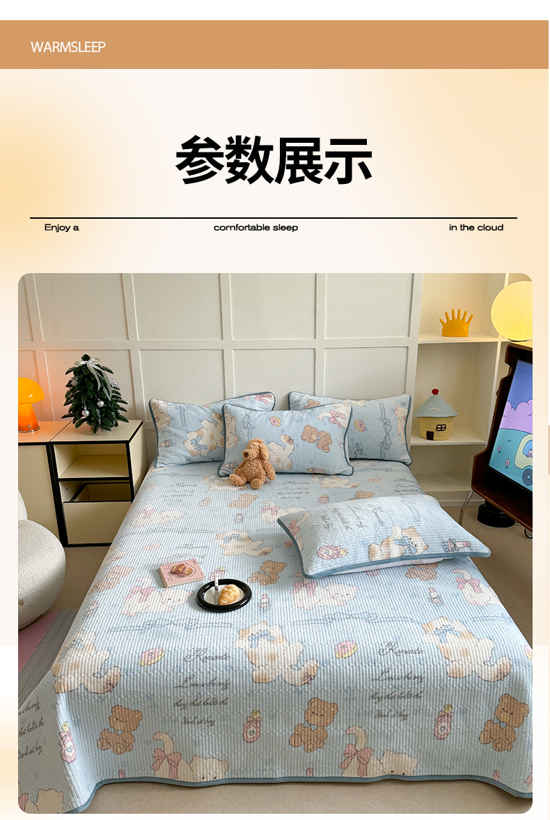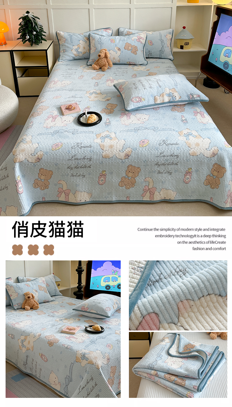 商品名称:萝莉家纺 2024爆款印花牛奶绒夹棉绗缝床盖三件套 俏皮猫猫