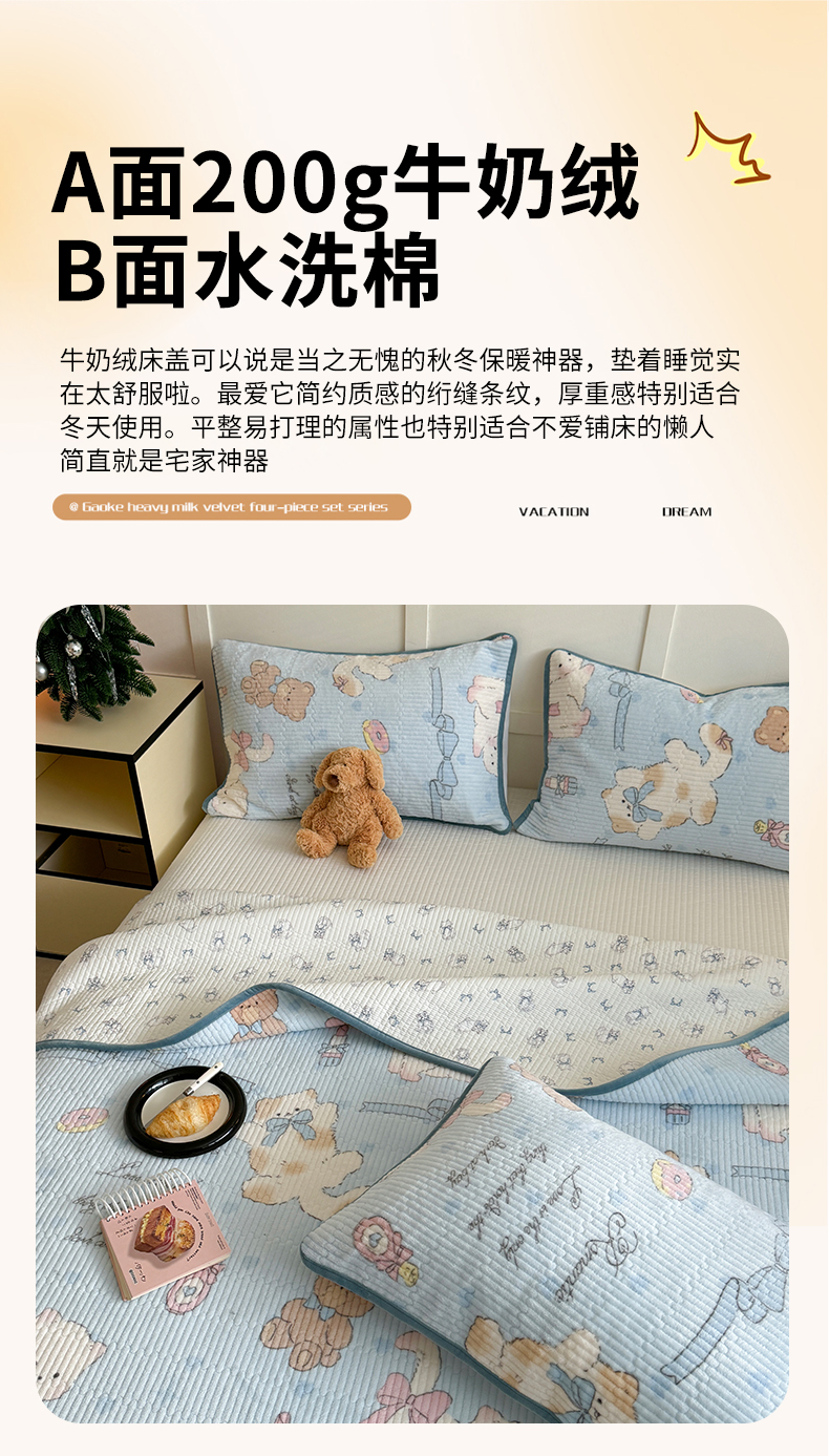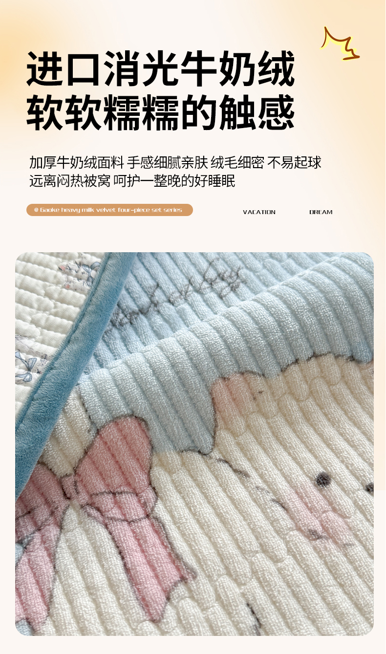(总)萝莉家纺 2025秋冬新品韩版花边款加厚牛奶绒四件套,猫狗,花粉,花绿,可爱猫,甜品店,小肥猫,心心,熊熊