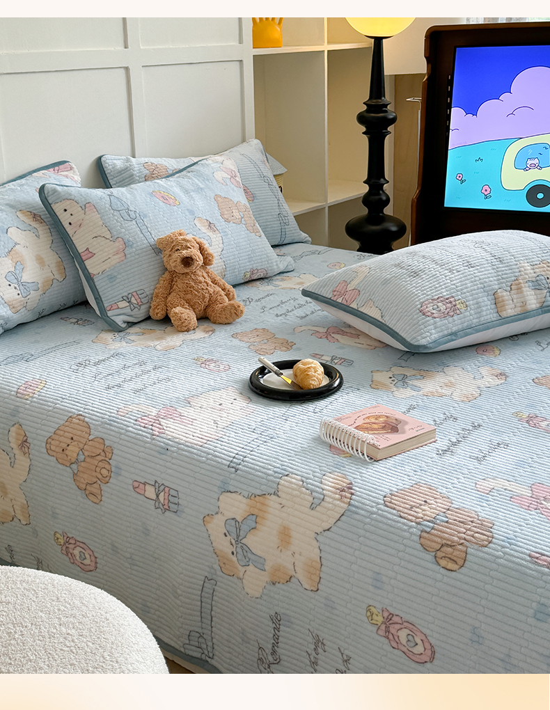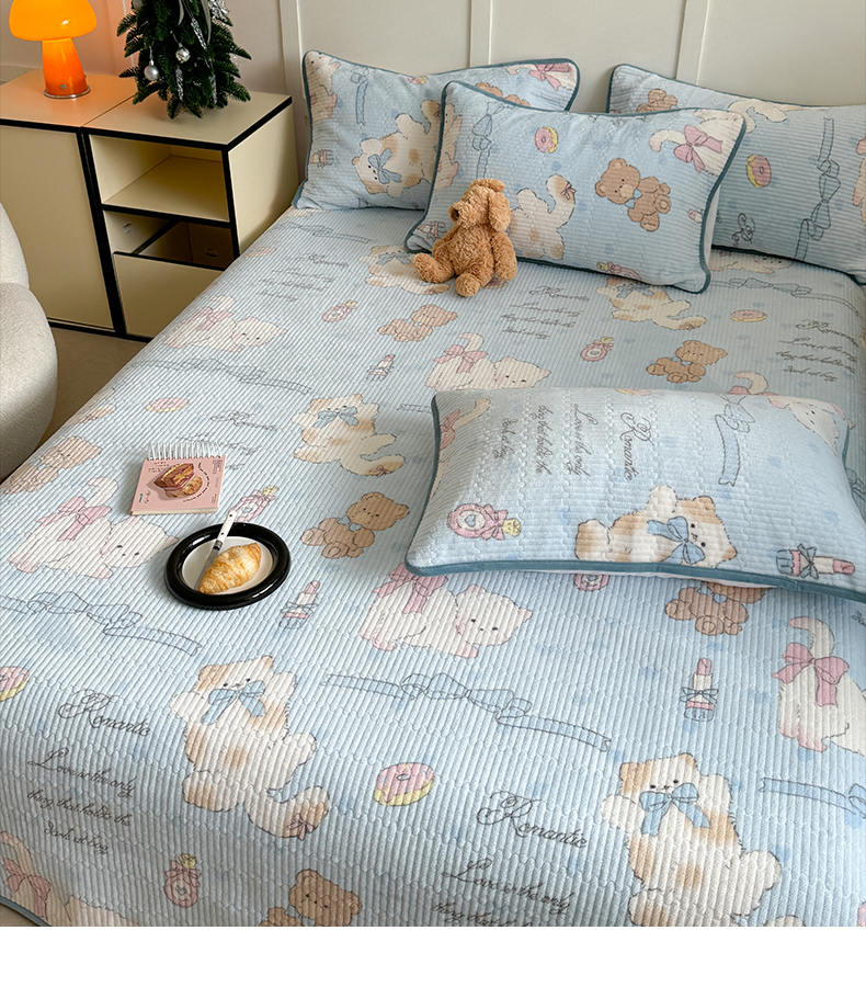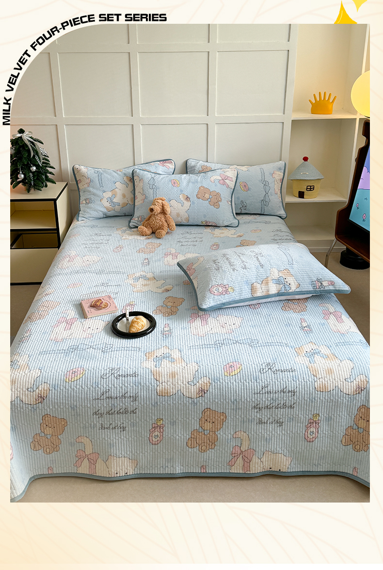 萝莉家纺 2024爆款印花牛奶绒夹棉绗缝床盖三件套 俏皮猫猫