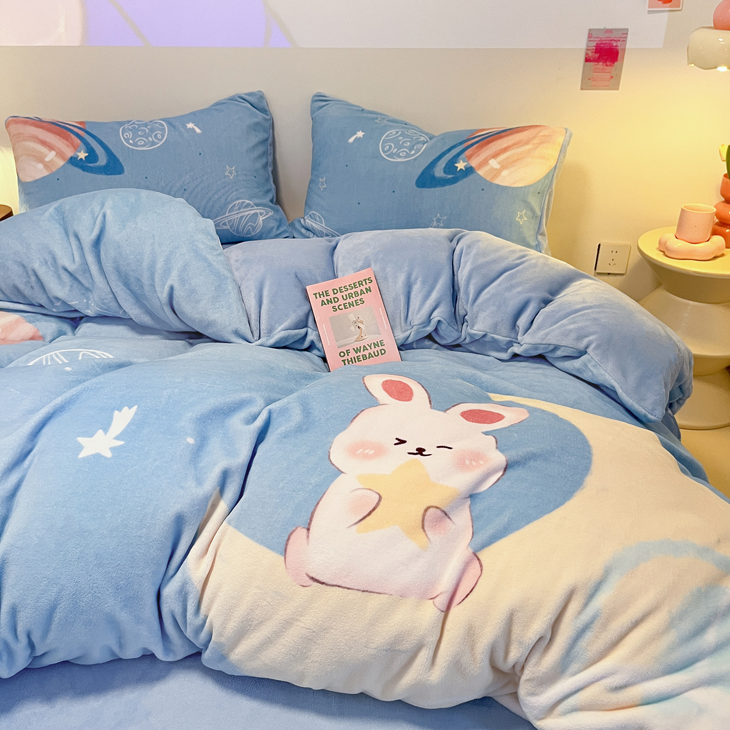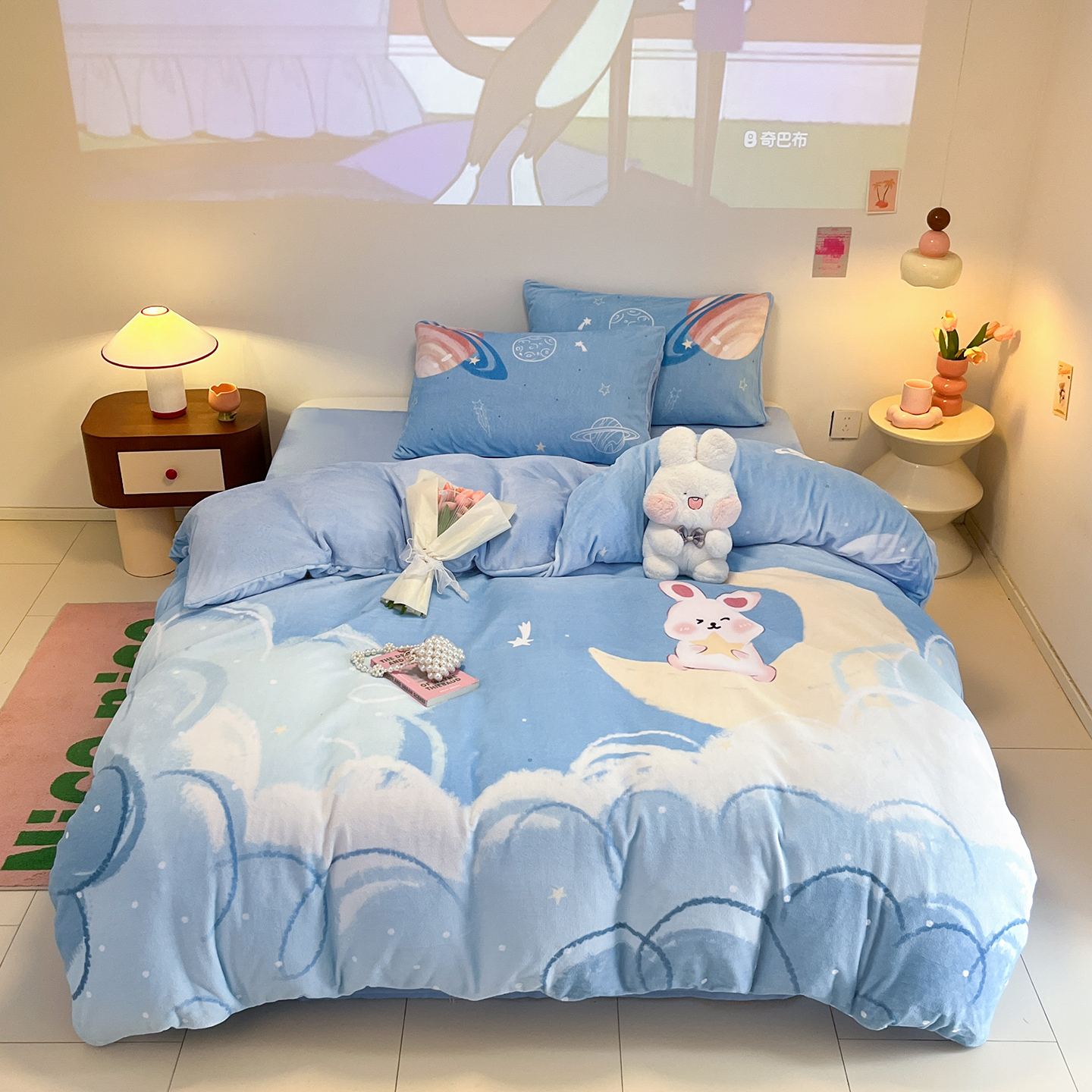 新方向 2025新款全消光A类儿童牛奶绒四件套-萌萌兔 萌萌兔-蓝