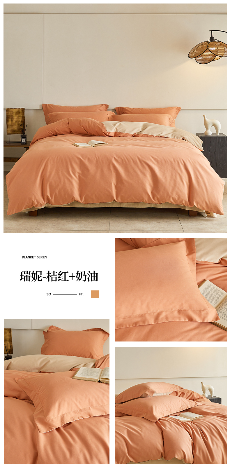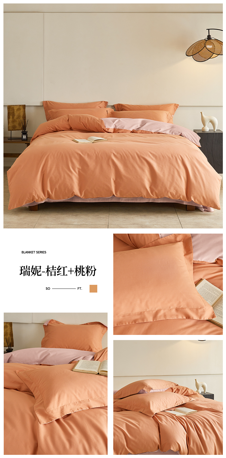 商品名称:秀色家纺 2025新款秋冬加厚保暖床上纯色四件套纯棉磨毛全棉床单被套三件套50支-瑞妮 瑞妮-桔红+桃粉