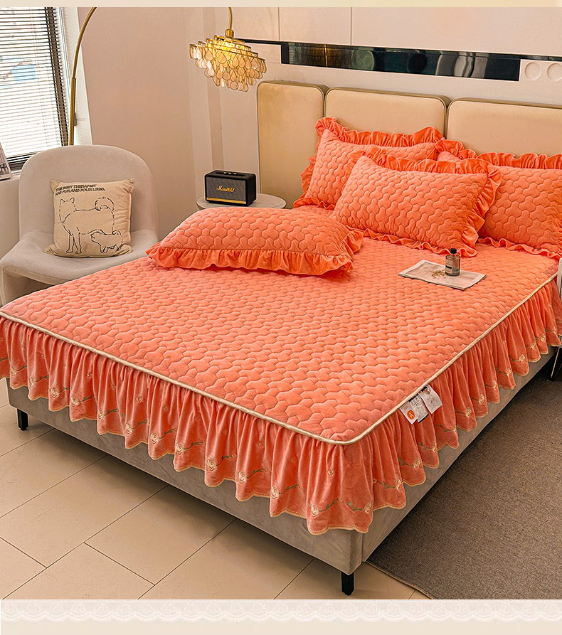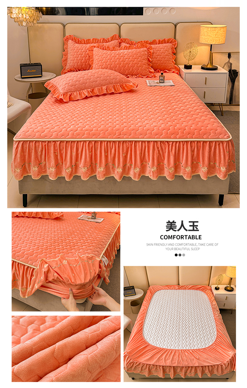 • 91家纺网 家纺一手货源 找家纺 (总)恒爱家纺 2025新款牛奶绒贴布绣夹棉床裙四件套,豆沙红,浪漫紫,天空蓝,温馨粉,象牙白