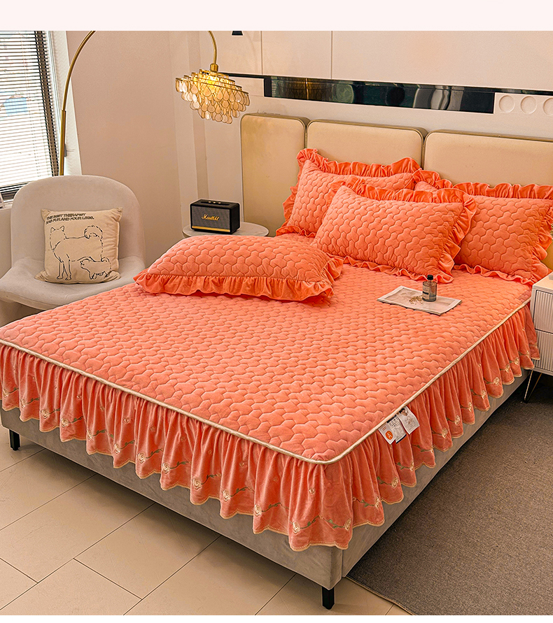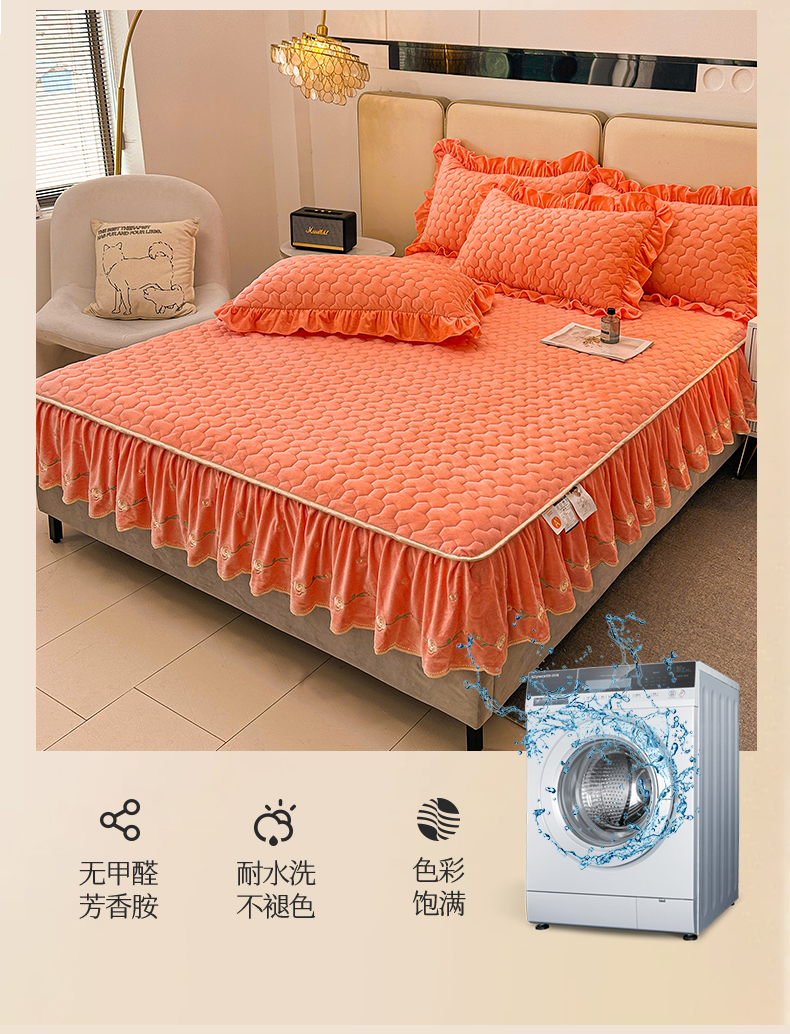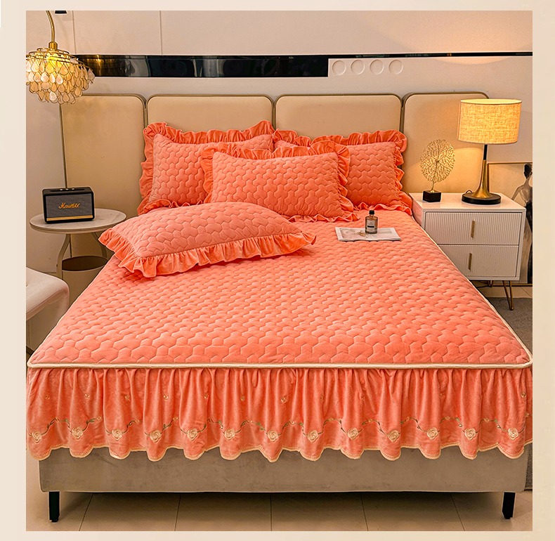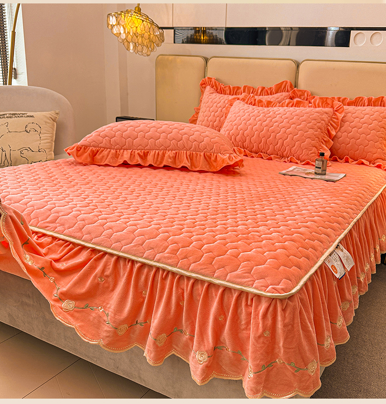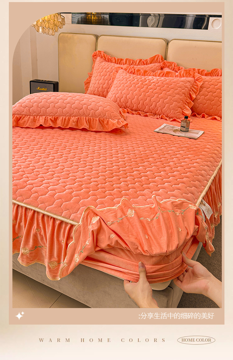 (总)恒爱家纺 2025新款牛奶绒贴布绣夹棉床裙四件套,豆沙红,浪漫紫,天空蓝,温馨粉,象牙白