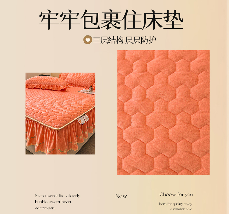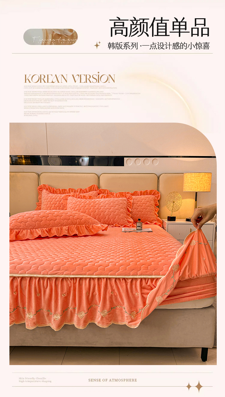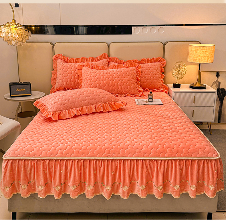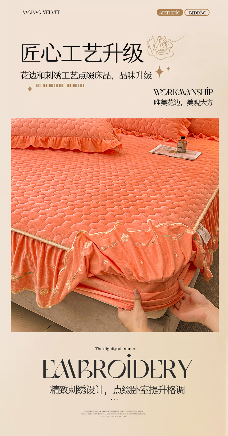(总)恒爱家纺 2025新款牛奶绒贴布绣夹棉床裙四件套,豆沙红,浪漫紫,天空蓝,温馨粉,象牙白