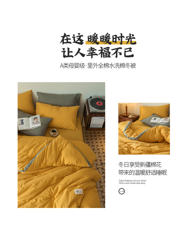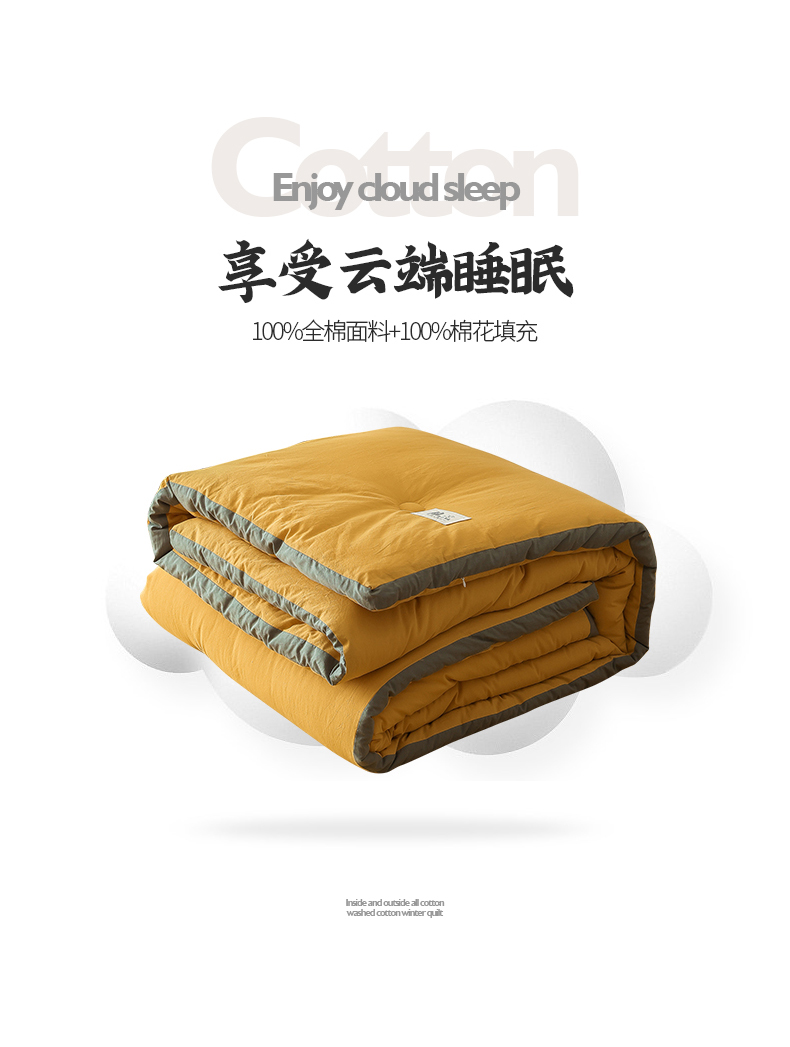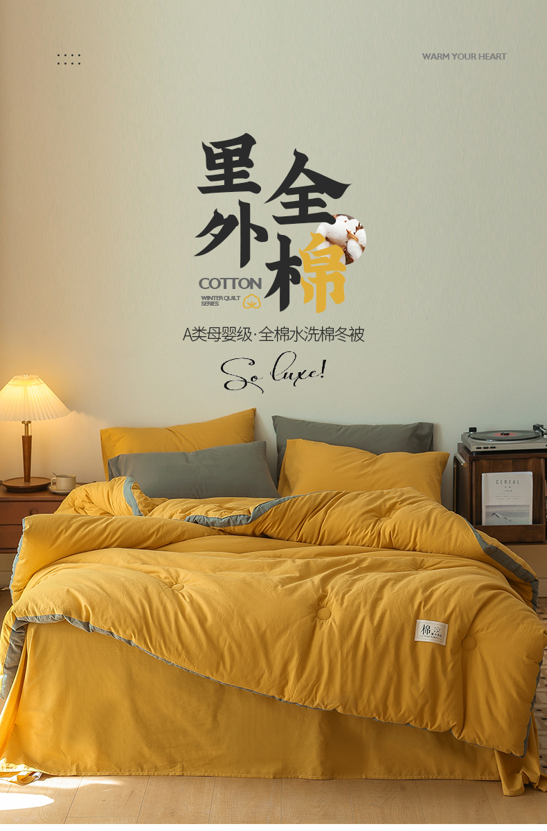 • 91家纺网 家纺一手货源 找家纺 雯雨家纺 2024新款里外全棉棉花被冬被 明亮黄