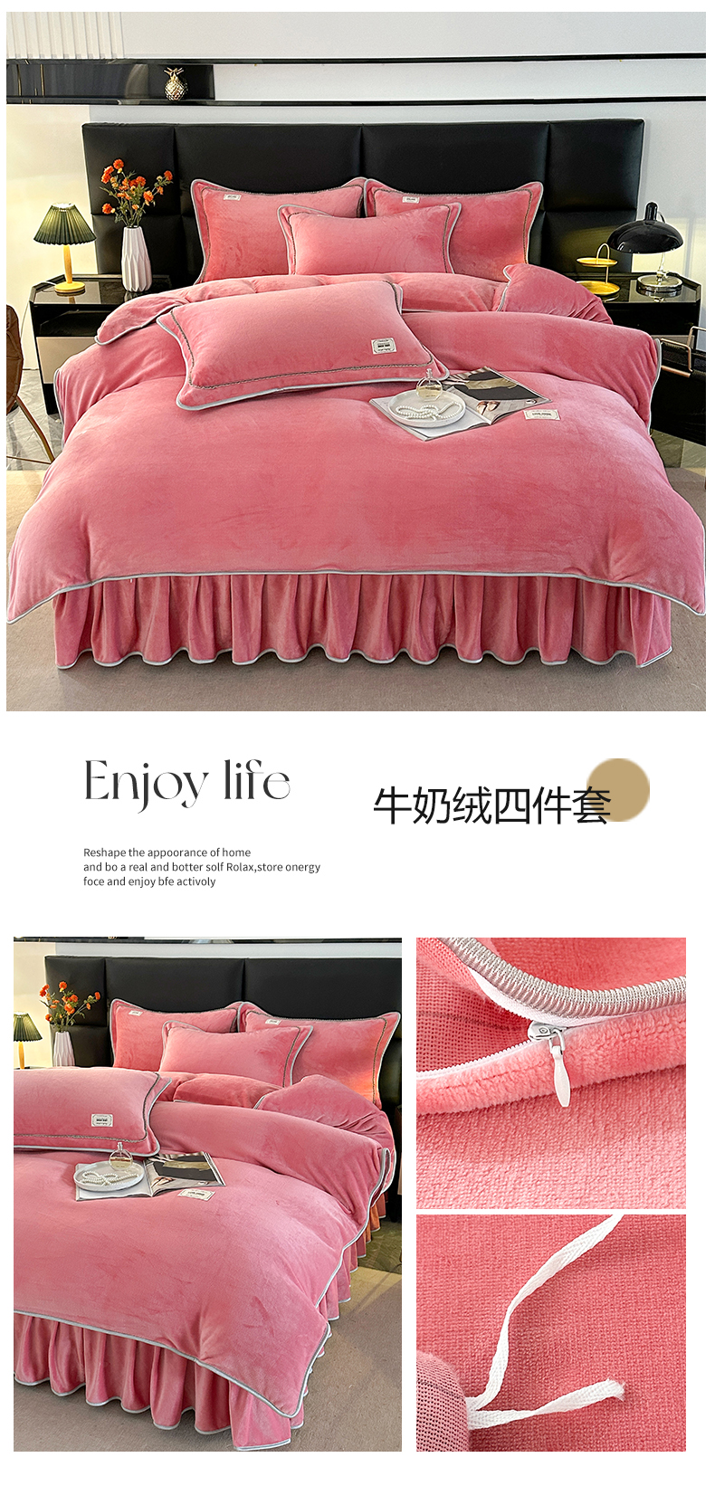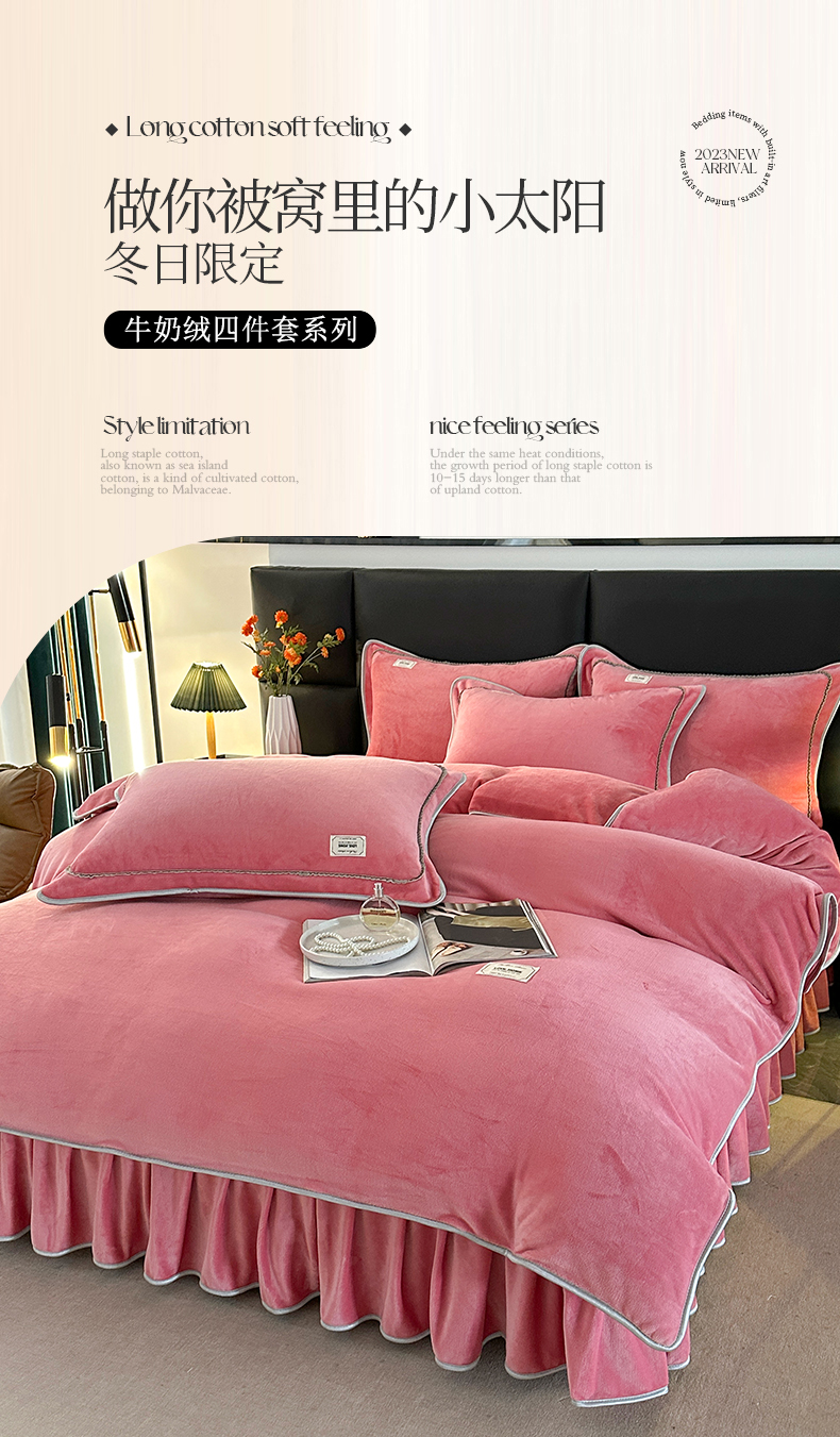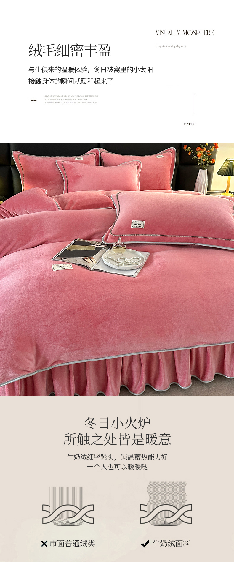 雨洋家纺 2025新款牛奶绒四件套系列 豆沙色