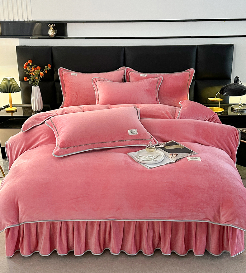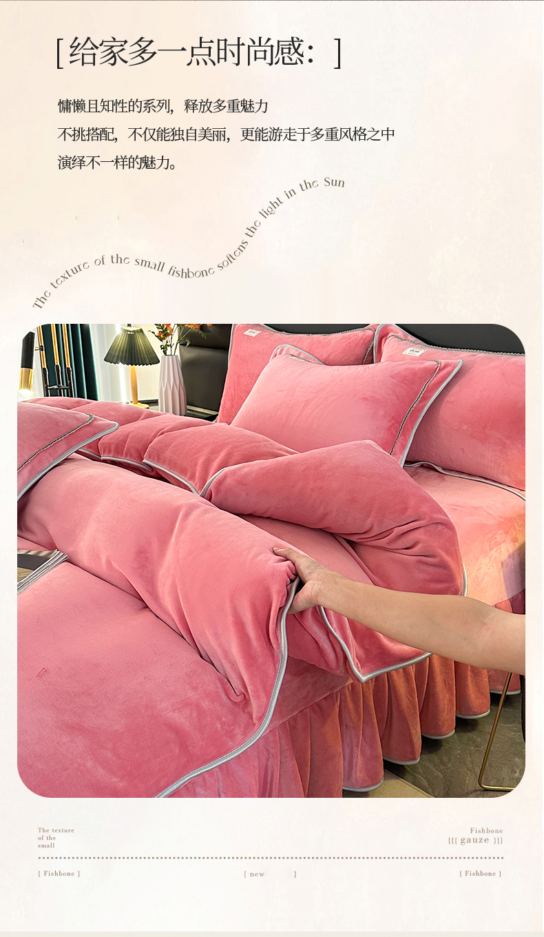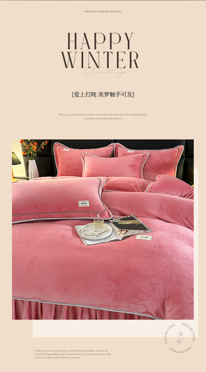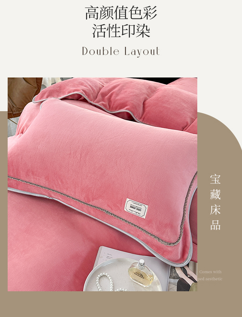 雨洋家纺 2025新款牛奶绒四件套系列 豆沙色