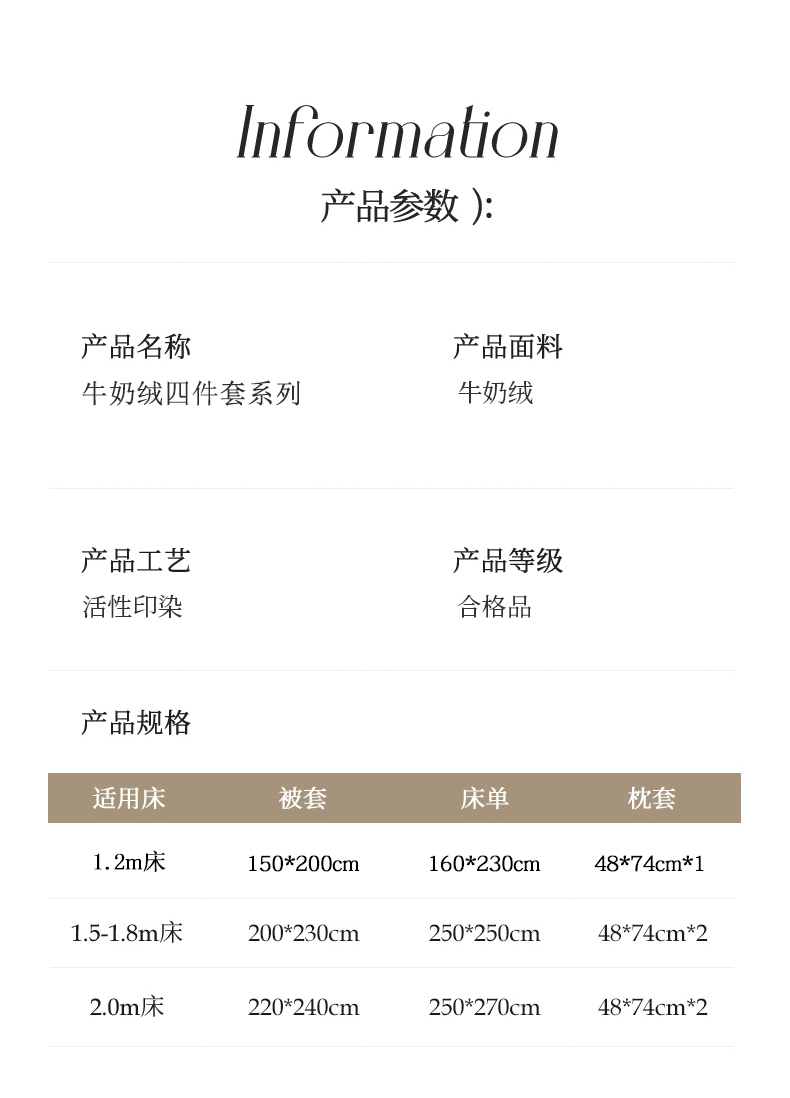 商品名称:雨洋家纺 2025新款牛奶绒四件套系列 豆沙色