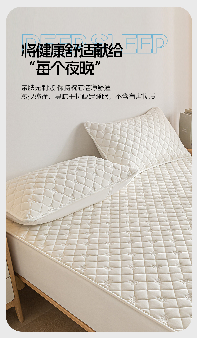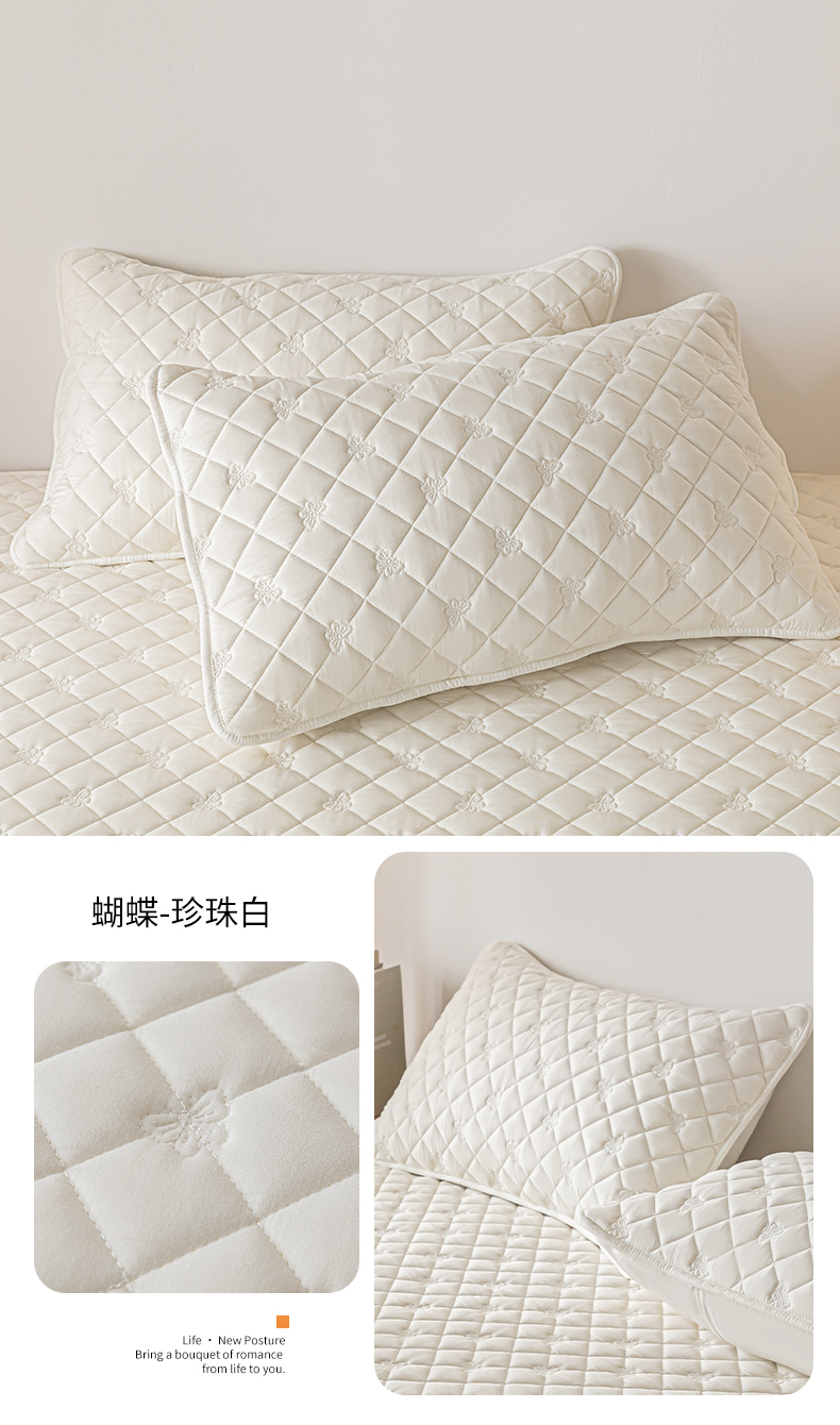 福来临家纺 2025新款蝴蝶款防水夹棉枕套 蝴蝶-珍珠白